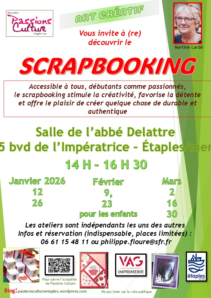 Atelier animé par Martine Lardétous niveauxSalle Abbé Delattre de 14h à 16h305 boulevard de l'Impératrice Les 12 et 26 janvier Les 9 et 23 Février pour les enfants Les 2, 16 et 30 mars Les ateliers sont indépendants les uns des autresPlus d'informations et inscription (obligatoire, places limitées !)06 61...