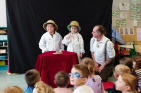 Vêtus de leurs blouses blanches, de leurs chapeaux de safari et munis de leur tapis magique, ils ont emmené les enfants dans leur univers fantastique.
