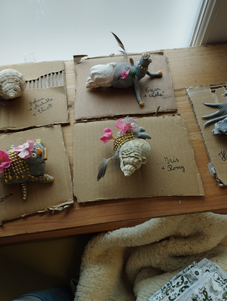 Après avoir observé les créatures à la loupe, les enfants ont donné libre cours à leur imagination en créant leur animal avec des coquilles et de l’argile. Chaque création a été nommée et présentée à la classe. Un très beau moment de partage qui a laissé place à toute la créativité des enfants !