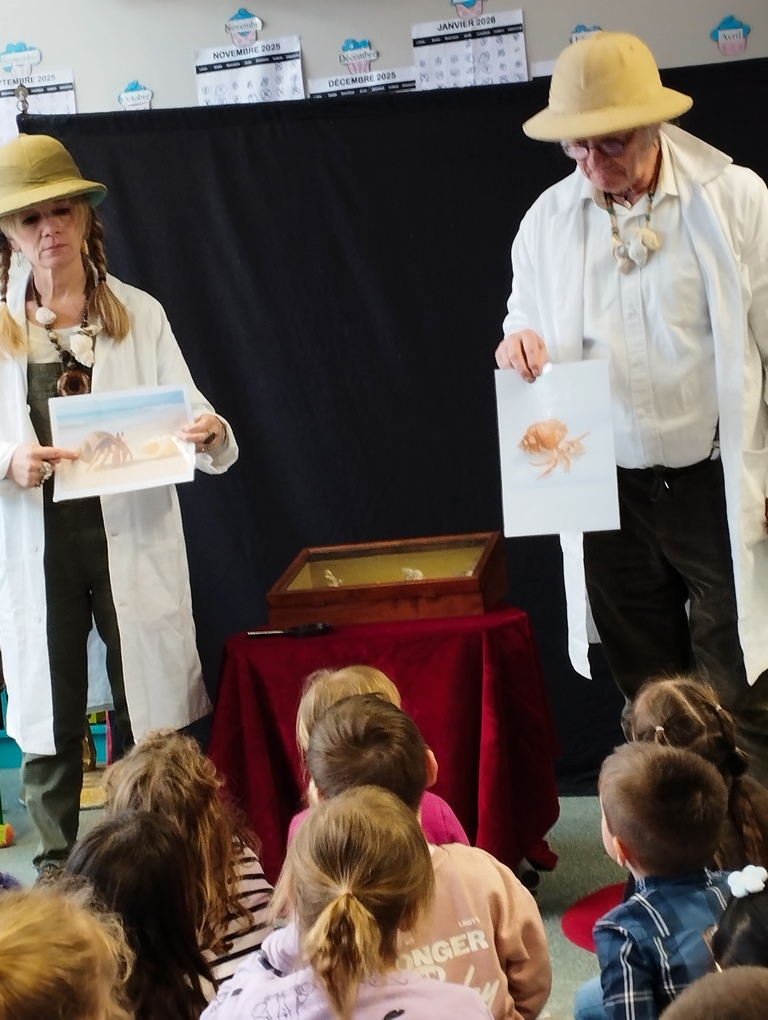 Olga et son compagnon de la compagnie Macadâne sont venus rendre visite, le vendredi 6 mars, aux élèves de moyenne et grande sections de l’école Jean Macé.