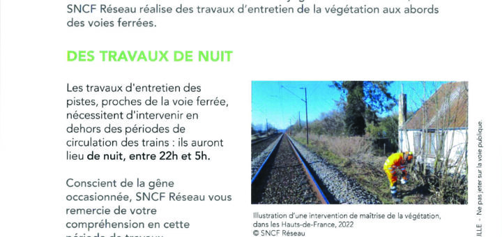 SNCF Réseau annonce la réalisation de travaux d’entretien de la végétation aux abords des voies ferrées sur la ligne Amiens-Boulogne, dans le secteur situé entre Étaples et Camiers. Ces interventions auront lieu du 10 au 16 novembre 2025. Elles sont indispensables pour garantir la sécurité et la régularité des circulations...