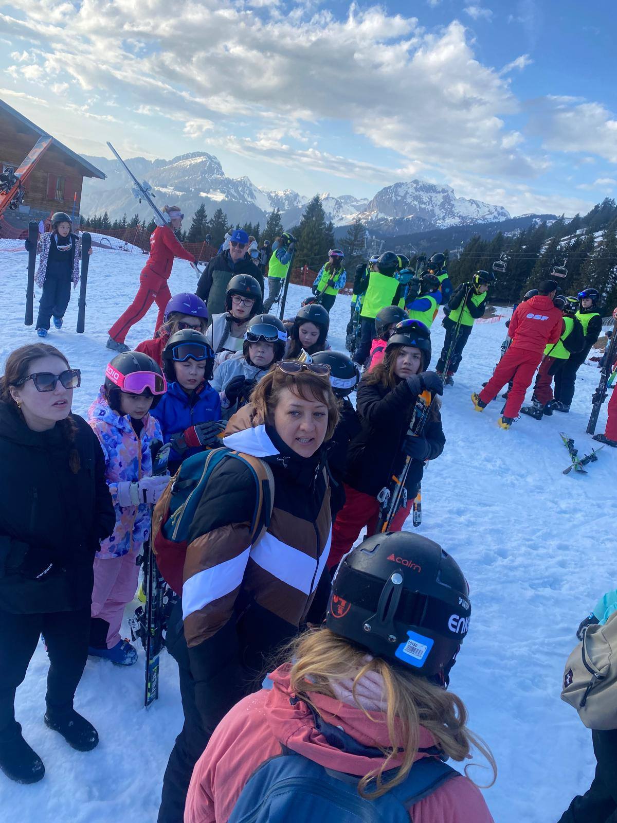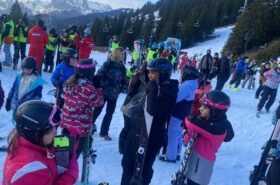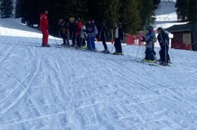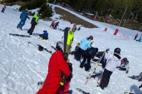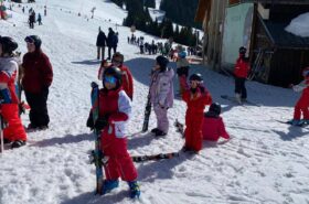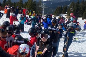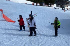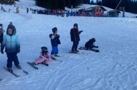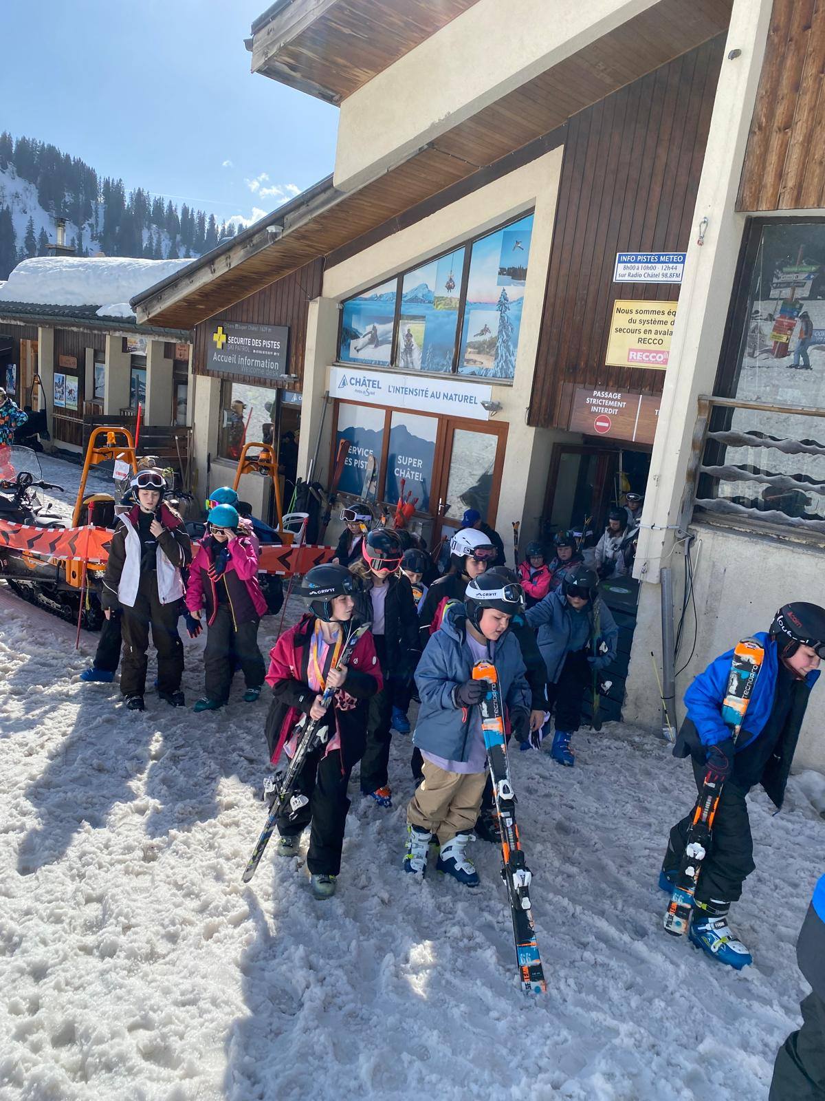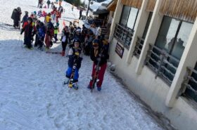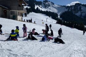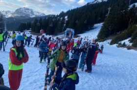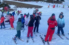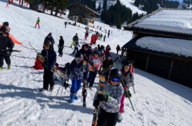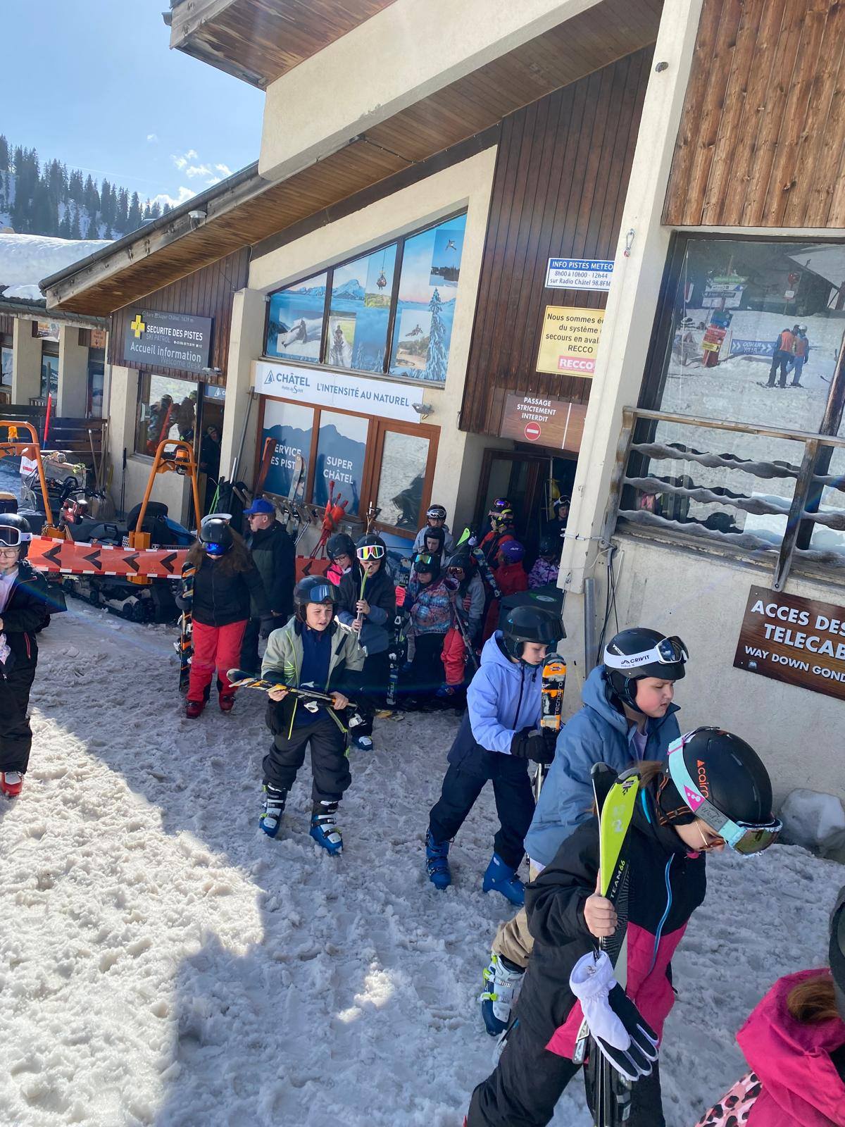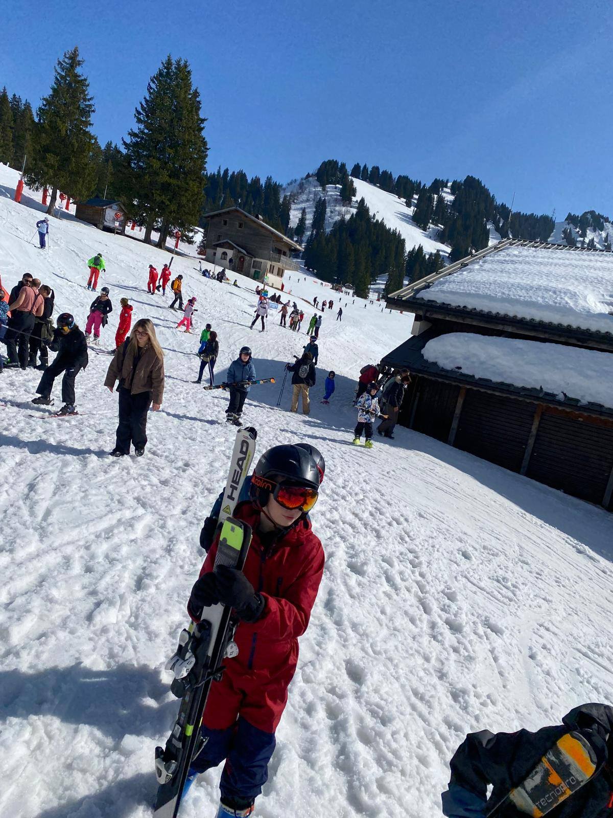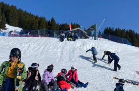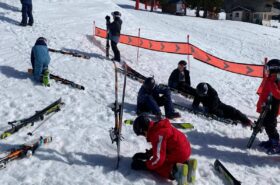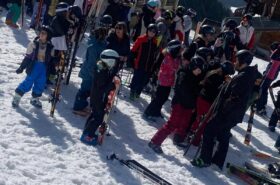 Pour le deuxième jour de ski, après la préparation de l’équipement et la répartition dans les différents groupes, les élèves ont rejoint les pistes avec les autres écoles présentes sur le site. L’ambiance est animée et les pistes sont très fréquentées, mais tout se déroule dans la bonne humeur
