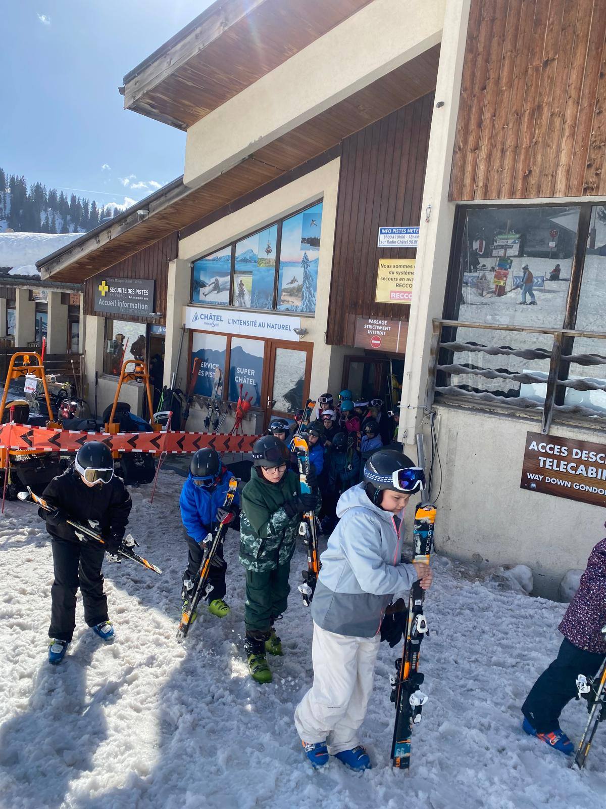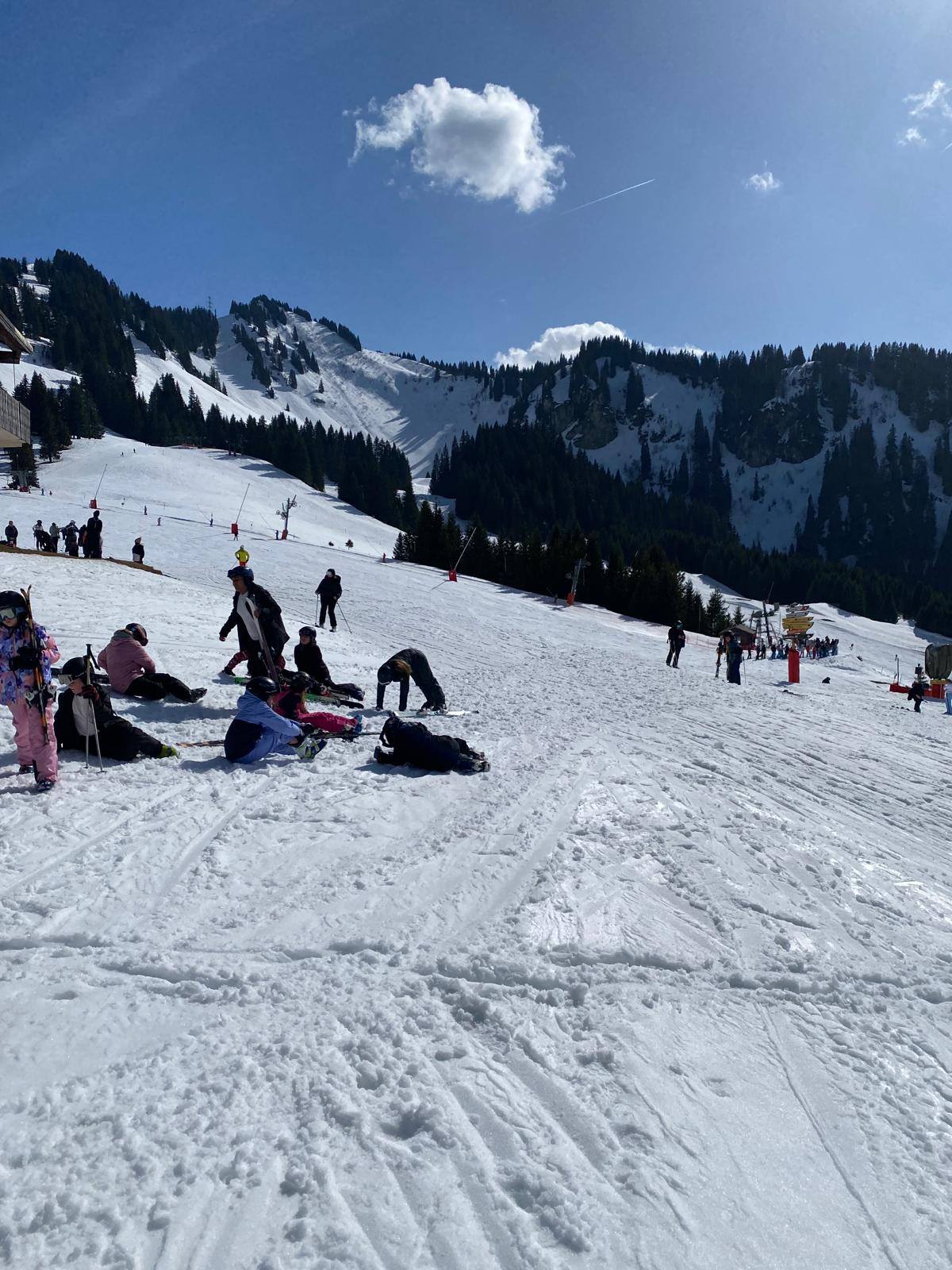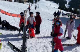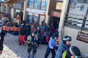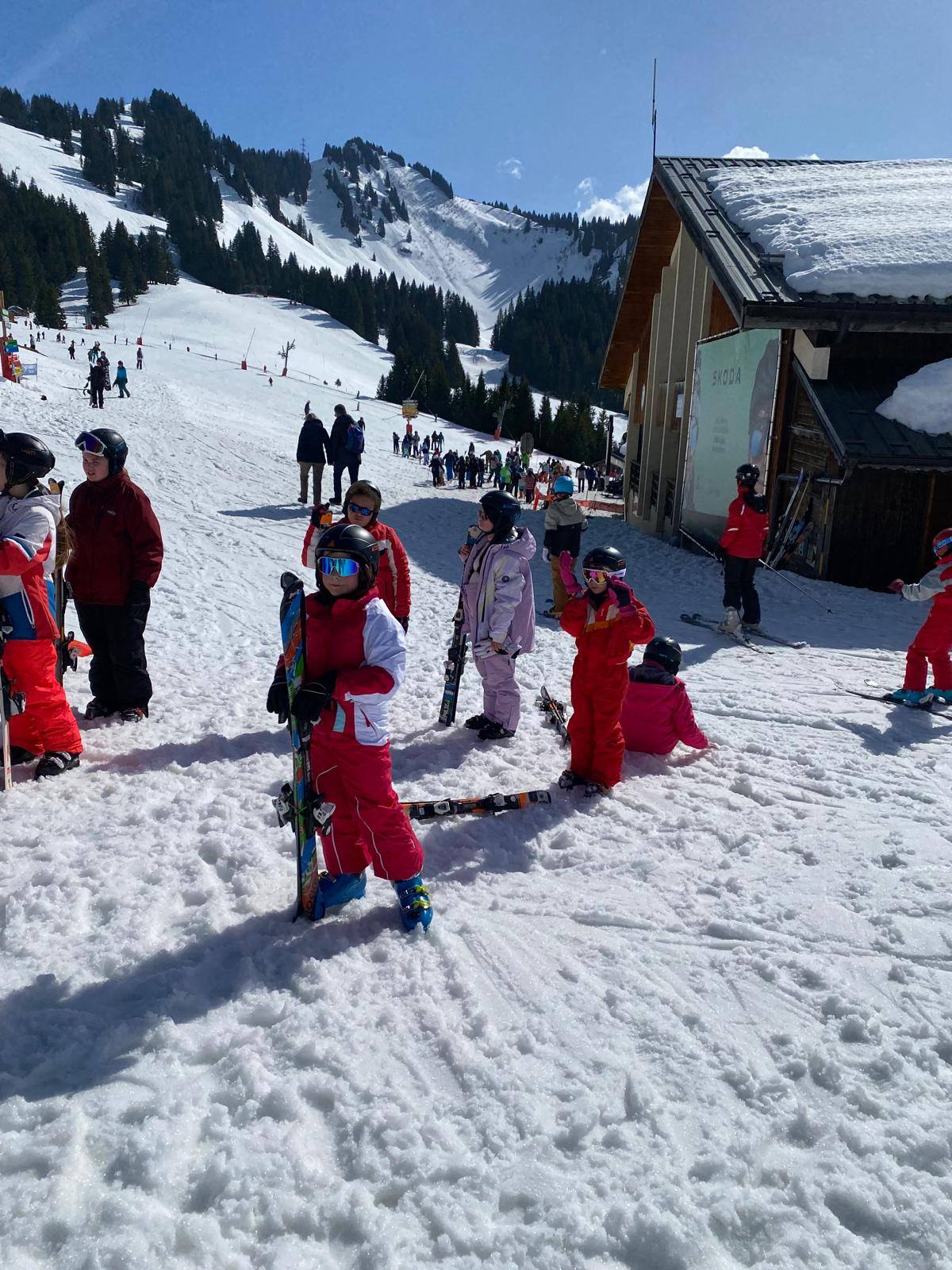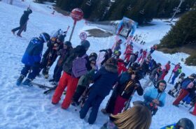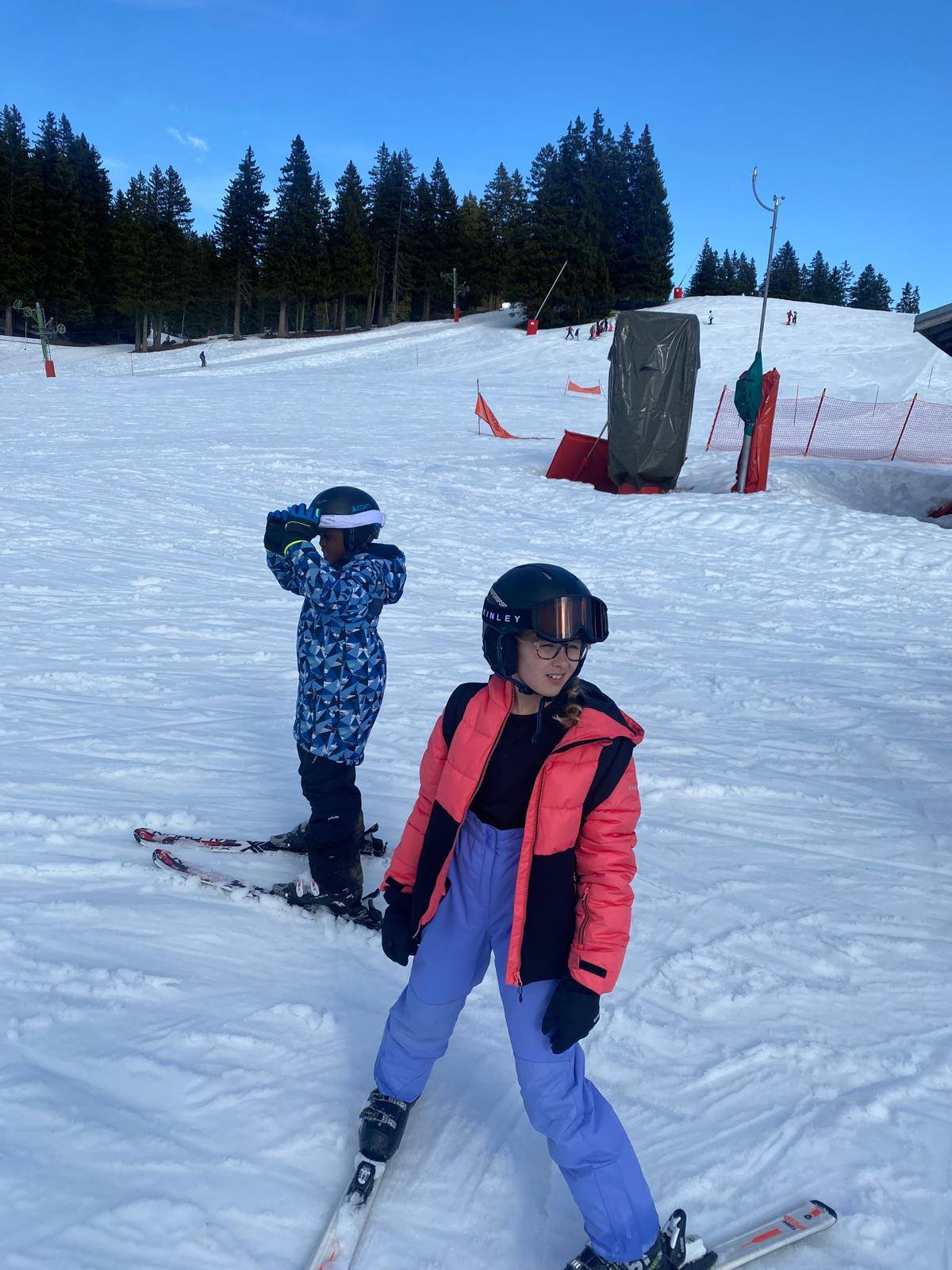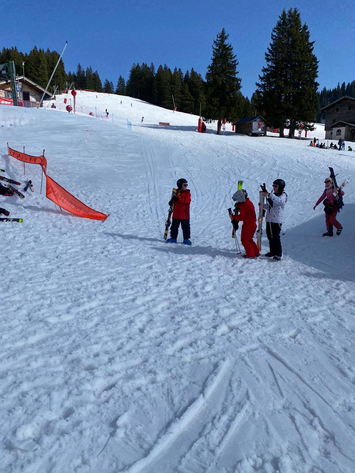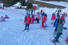 Pour le deuxième jour de ski, après la préparation de l’équipement et la répartition dans les différents groupes, les élèves ont rejoint les pistes avec les autres écoles présentes sur le site. L’ambiance est animée et les pistes sont très fréquentées, mais tout se déroule dans la bonne humeur