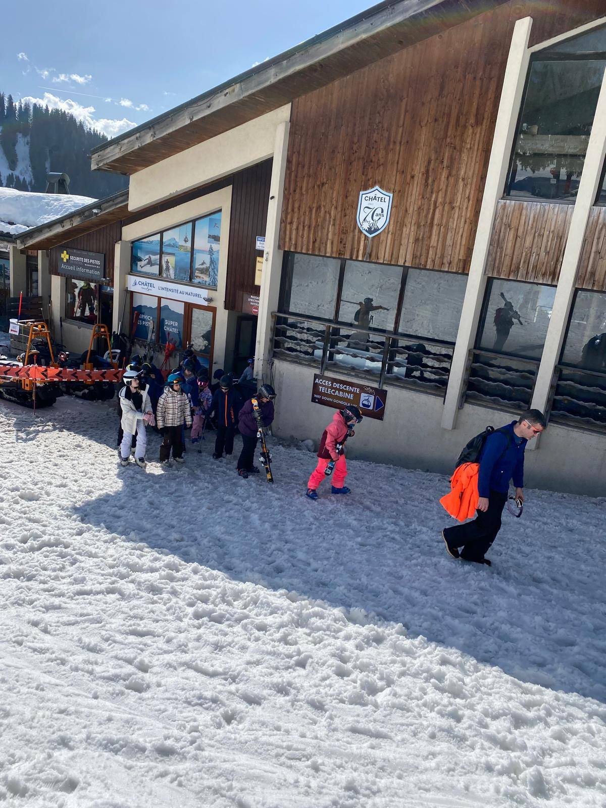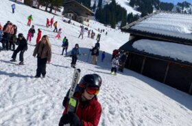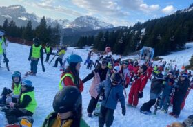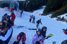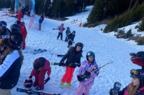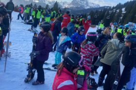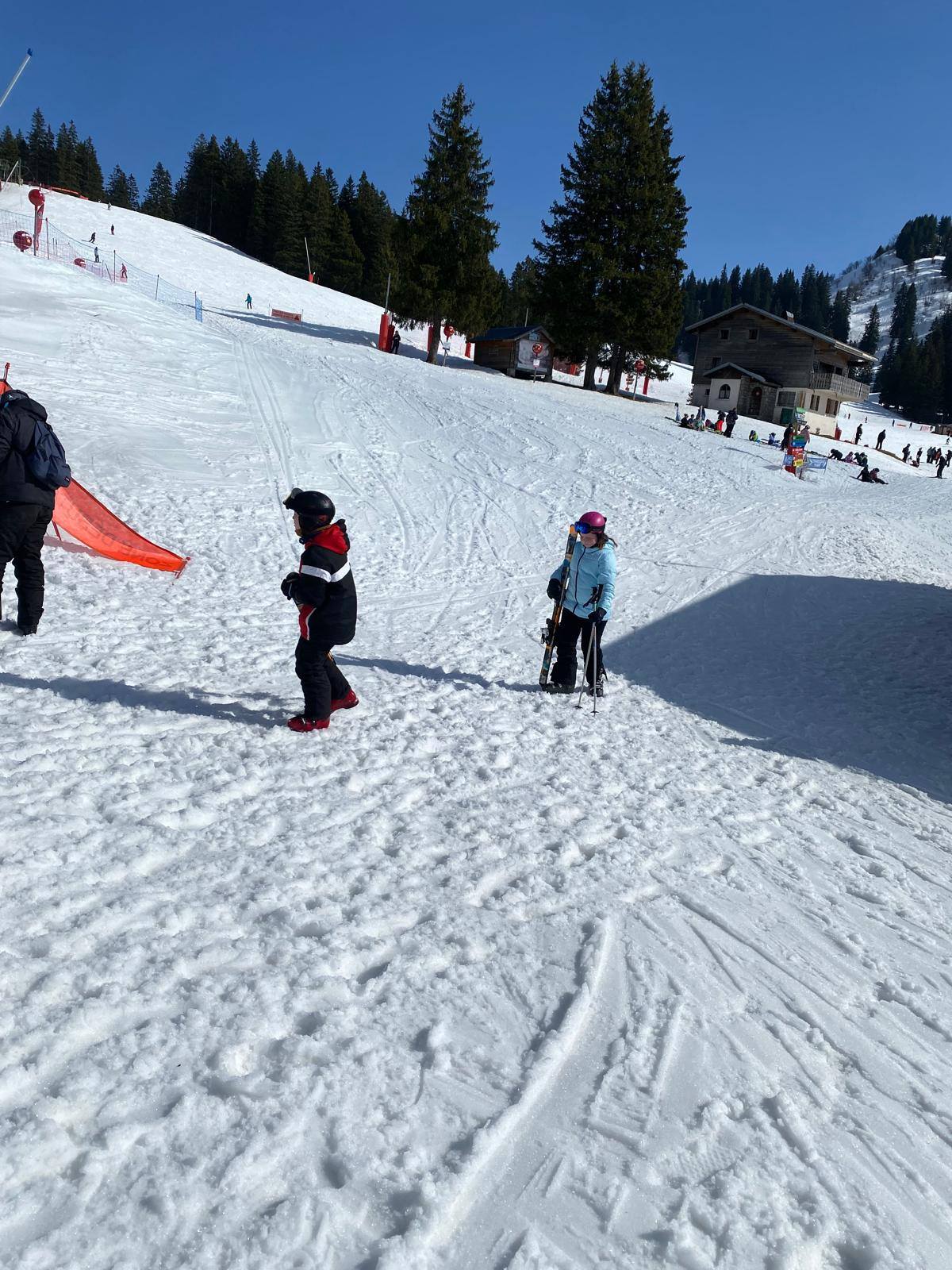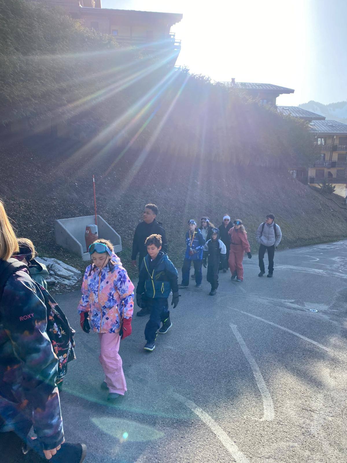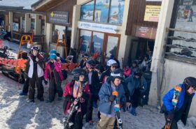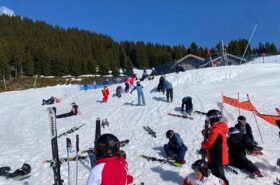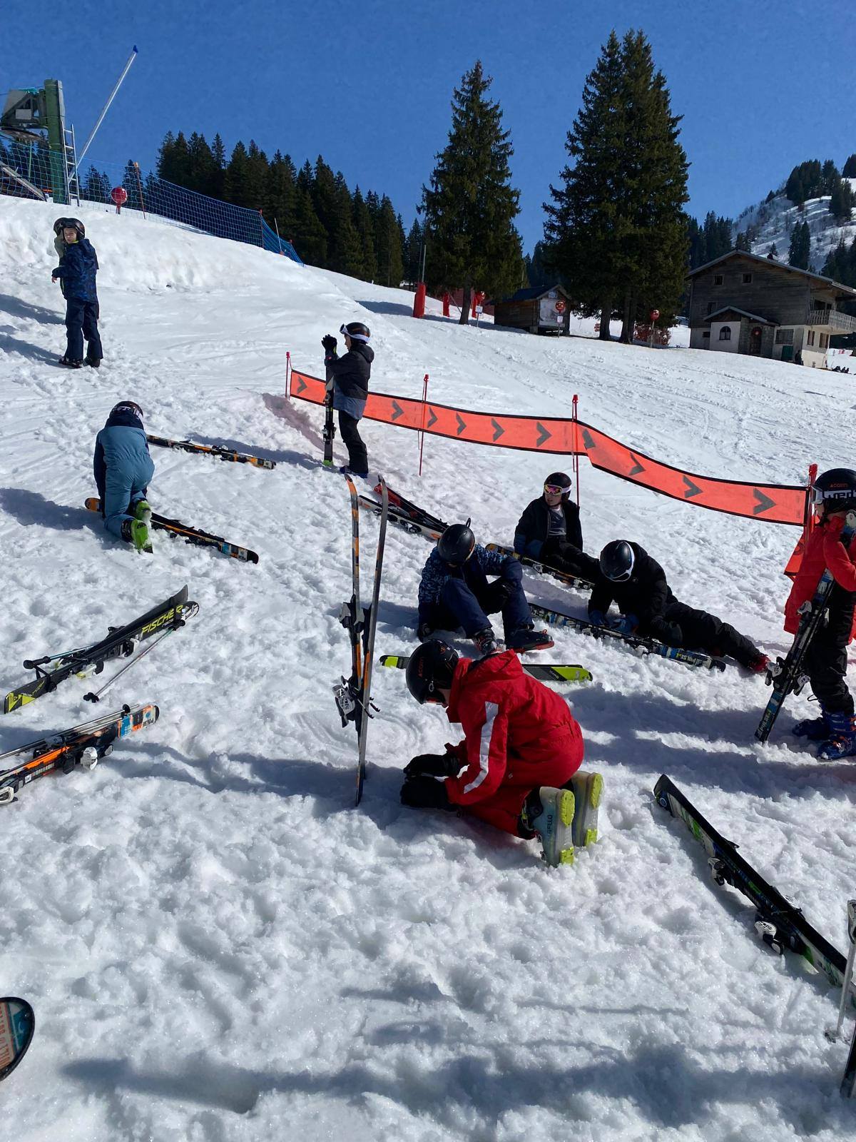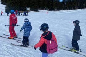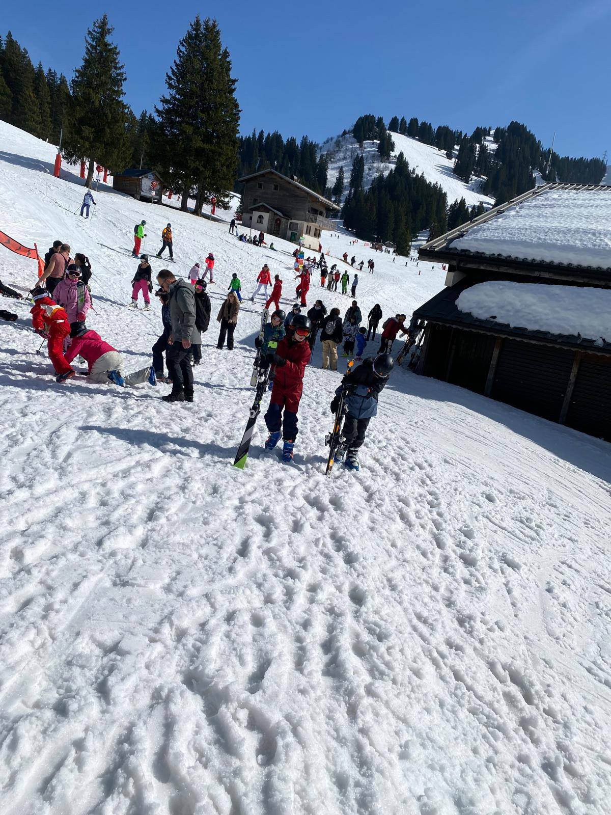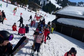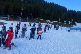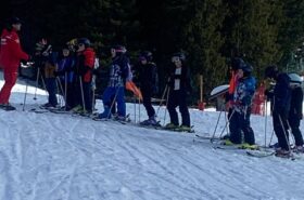 Pour le deuxième jour de ski, après la préparation de l’équipement et la répartition dans les différents groupes, les élèves ont rejoint les pistes avec les autres écoles présentes sur le site. L’ambiance est animée et les pistes sont très fréquentées, mais tout se déroule dans la bonne humeur