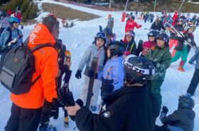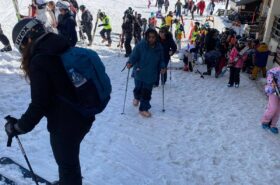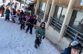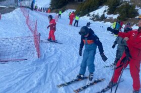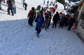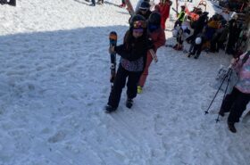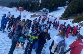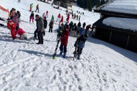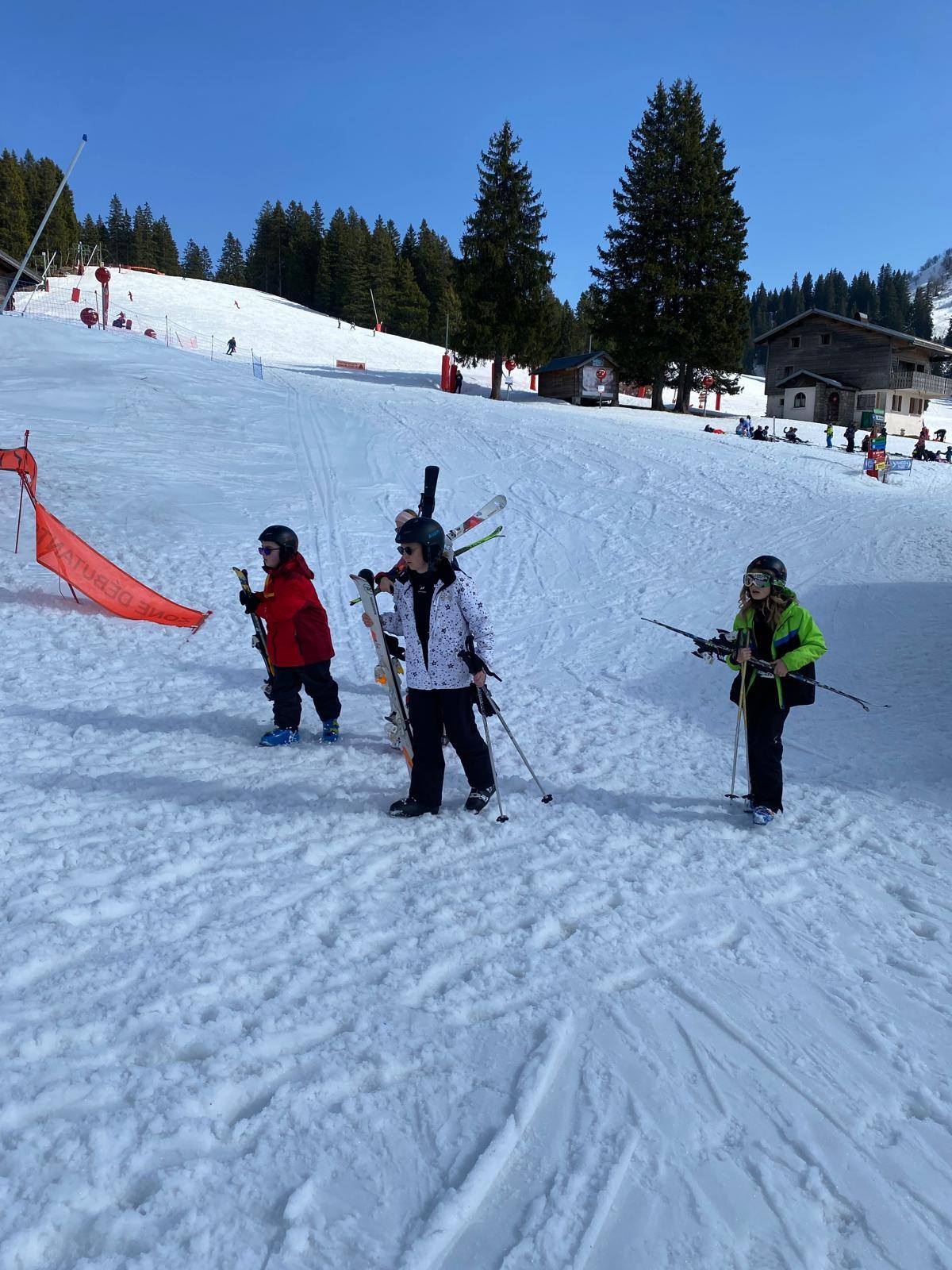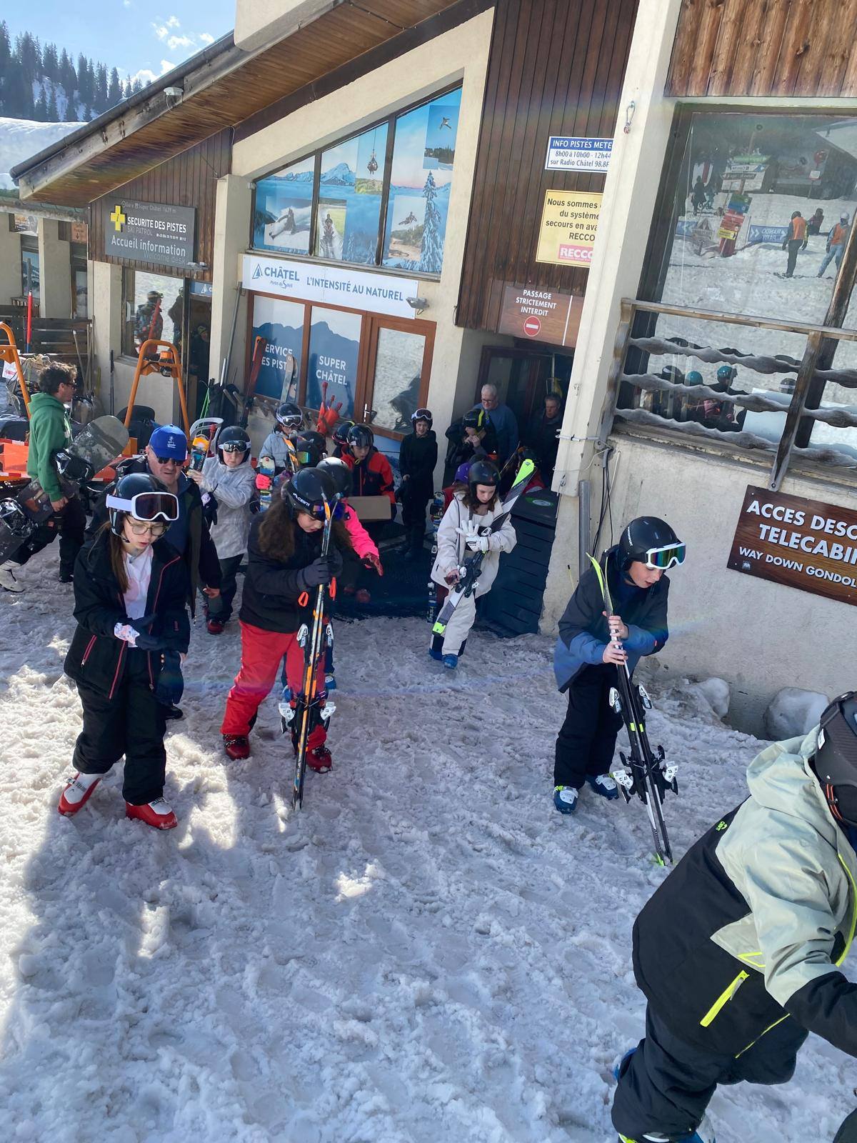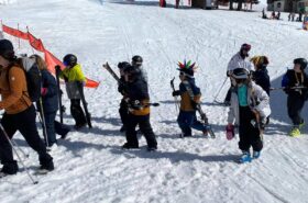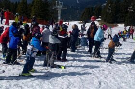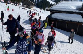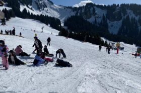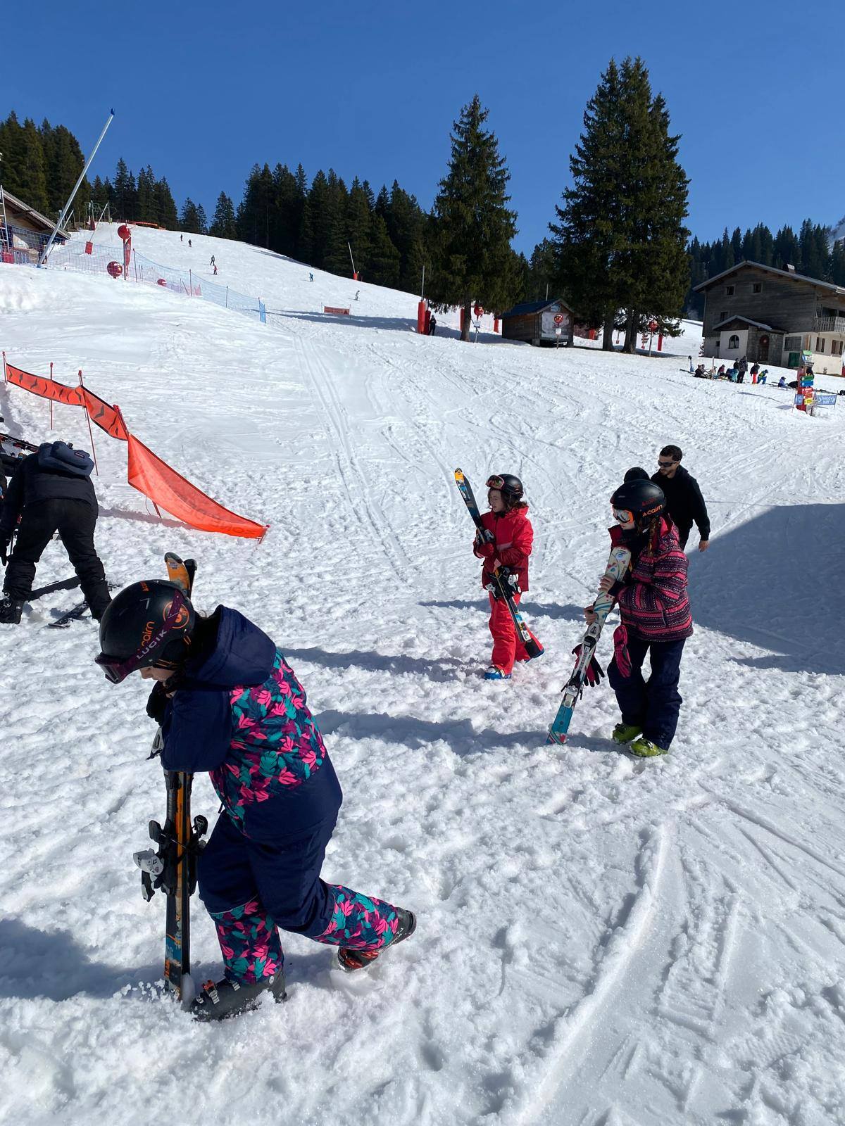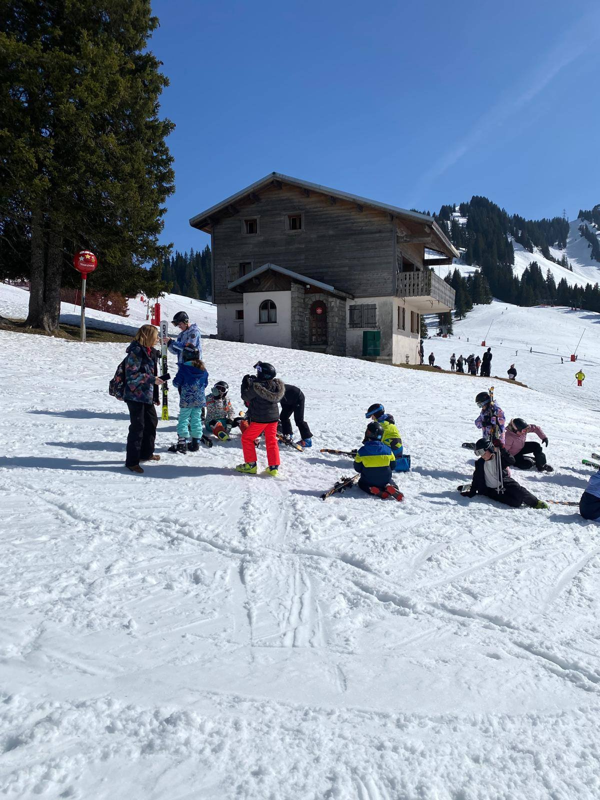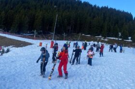 Pour le deuxième jour de ski, après la préparation de l’équipement et la répartition dans les différents groupes, les élèves ont rejoint les pistes avec les autres écoles présentes sur le site. L’ambiance est animée et les pistes sont très fréquentées, mais tout se déroule dans la bonne humeur