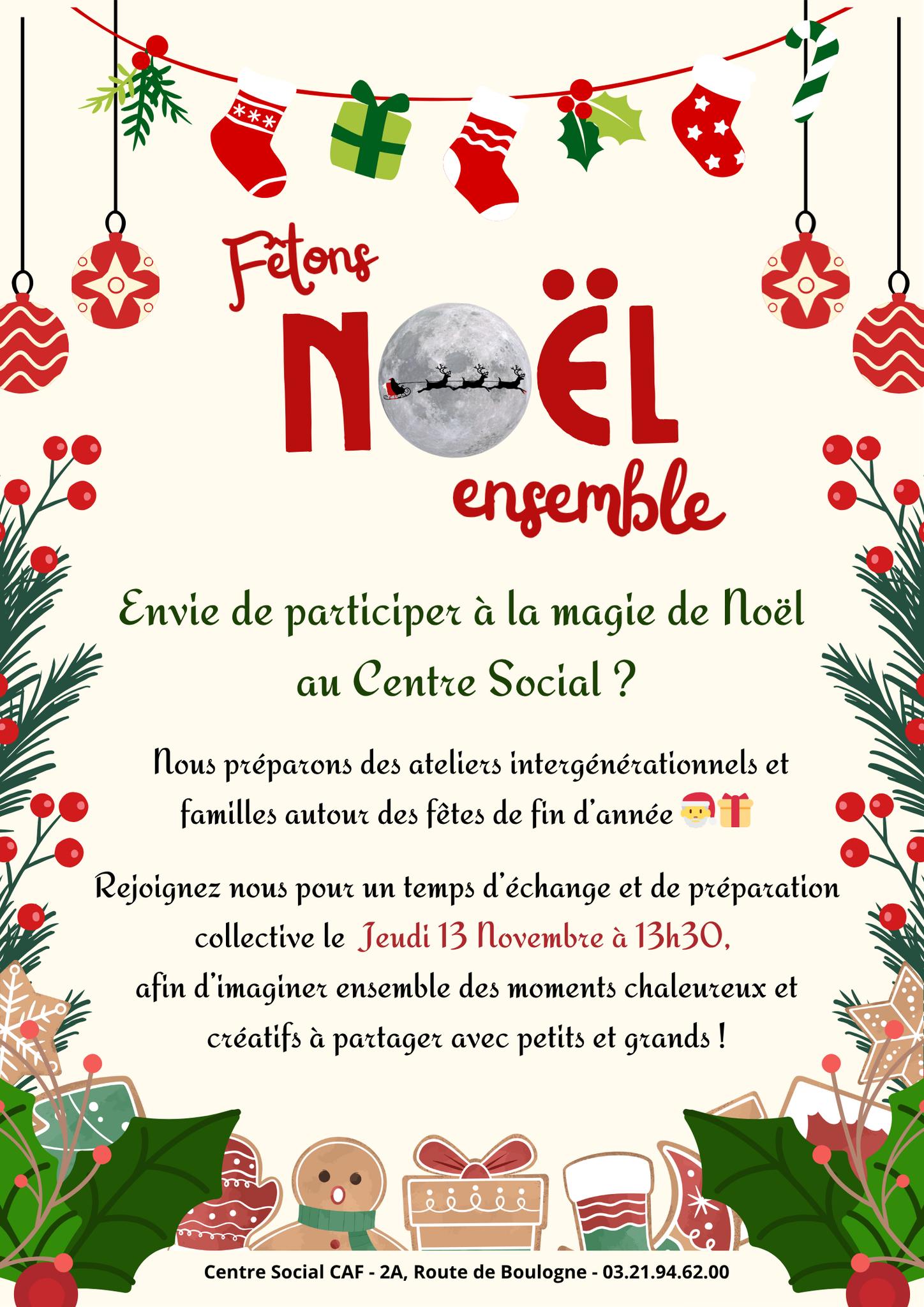 L’esprit des fêtes se prépare dès maintenant au Centre Social ! L’équipe a envie d’imaginer avec vous des moments chaleureux et créatifs à partager avec petits et grands. Temps d’échange et de préparation collective le : Jeudi 13 Novembre 2025, à 13h30