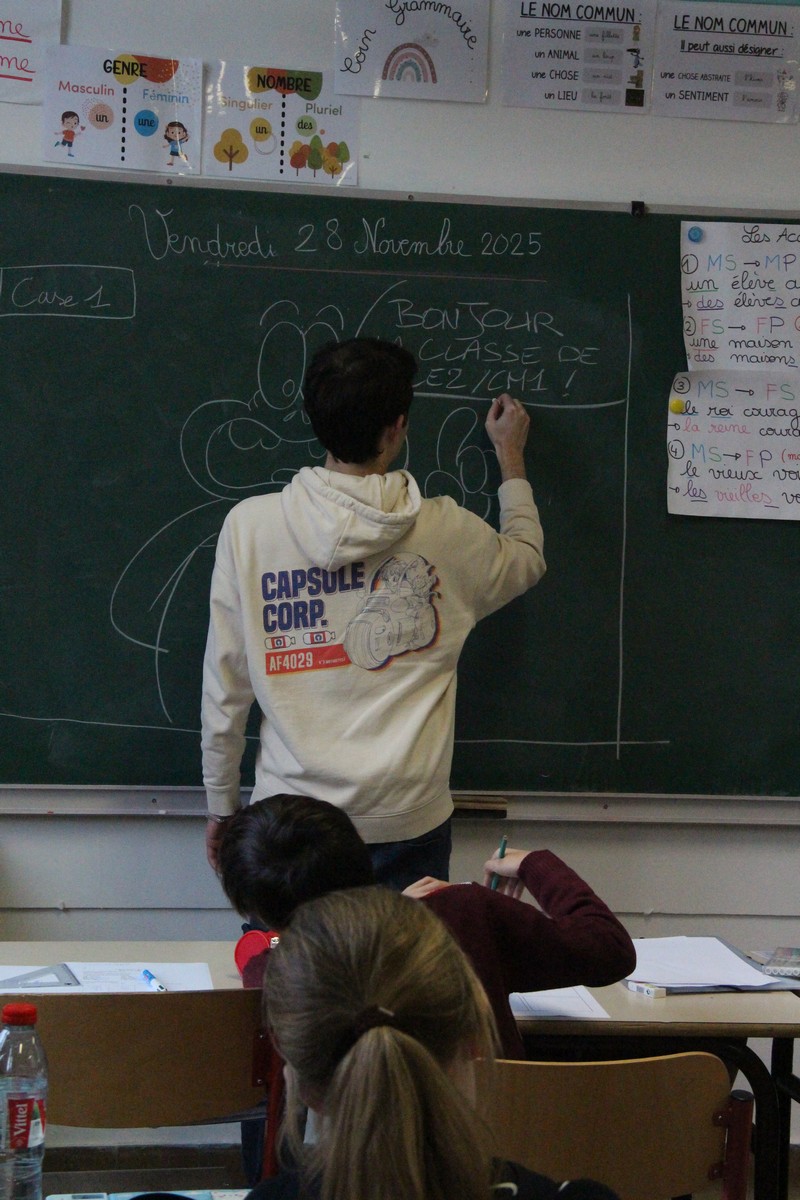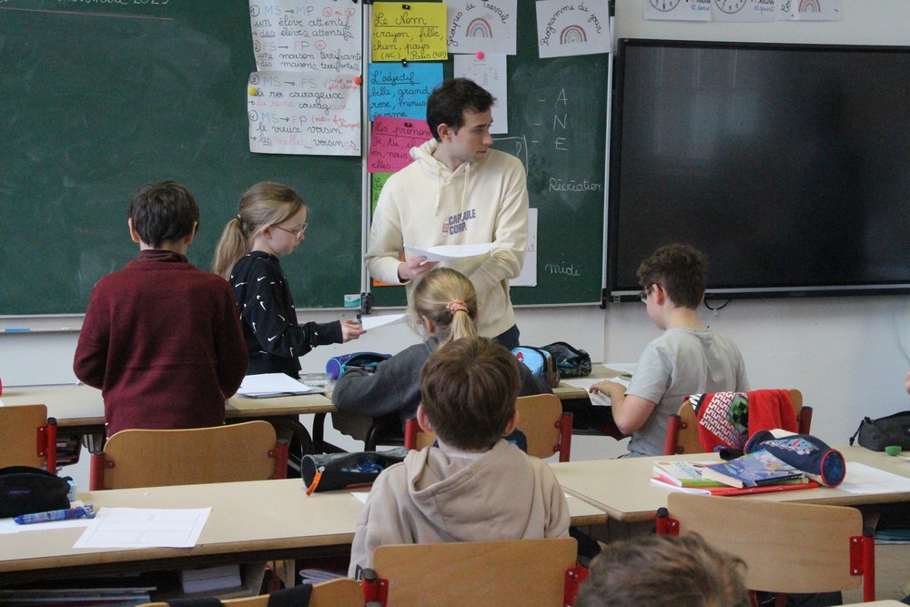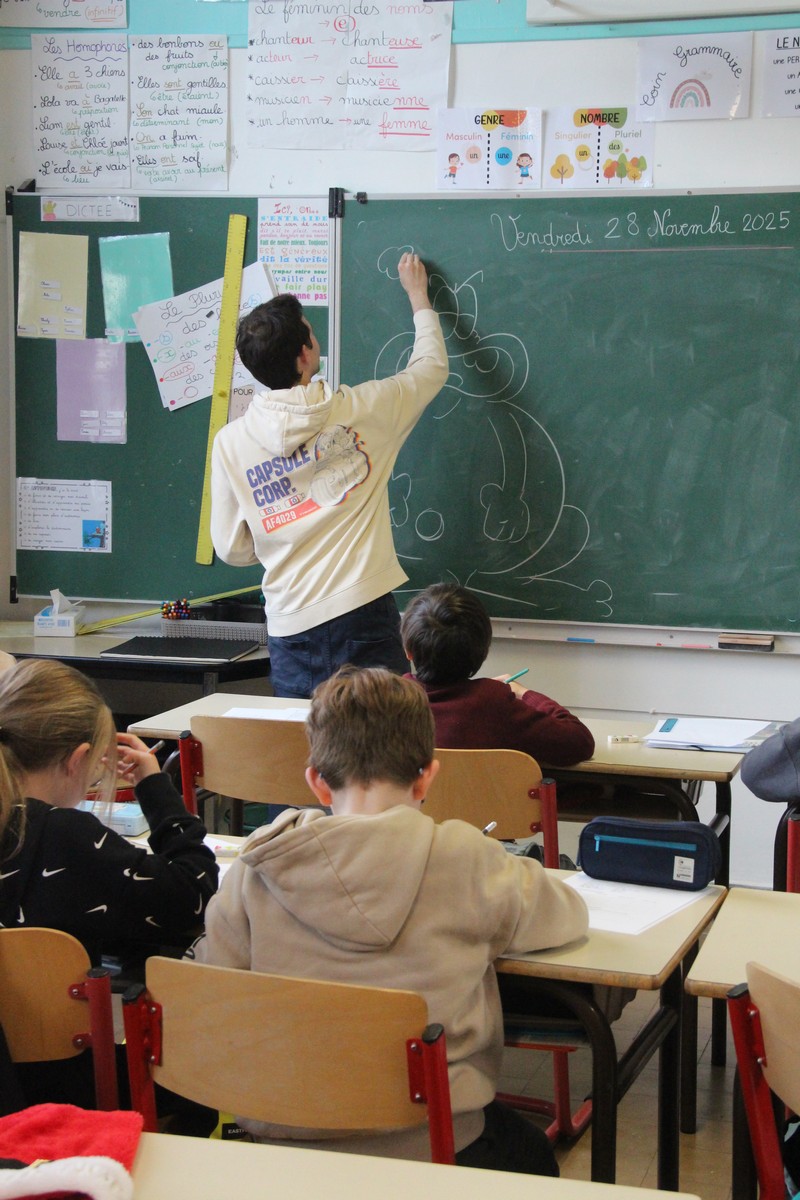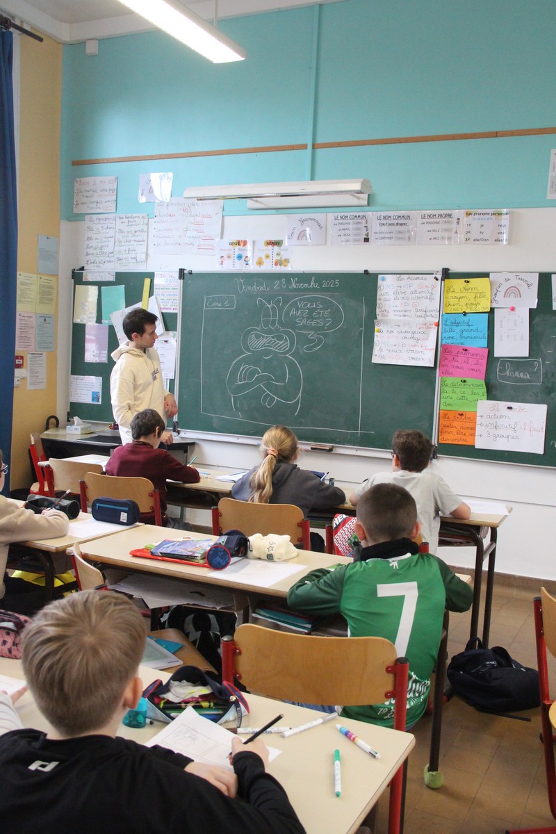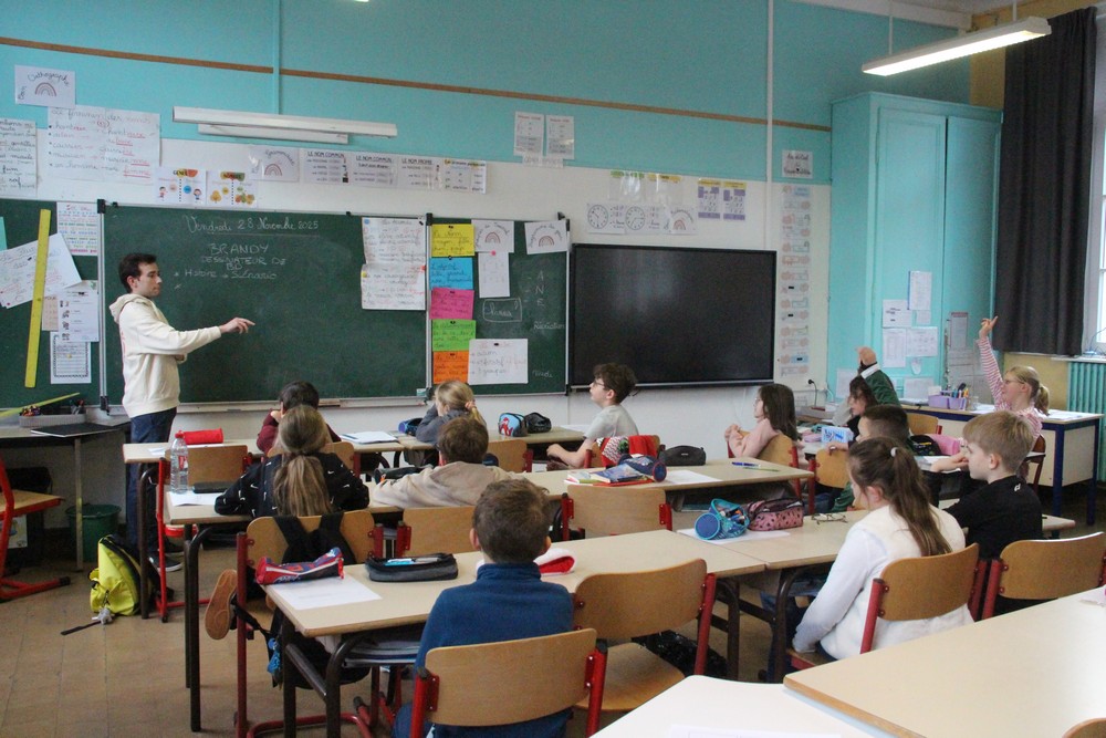 À l’occasion du salon « Je lis jeu’nesse », qui s’est tenu les 29 et 30 novembre à la salle de la Corderie, les élèves de CE2/CM1 de l’école Jean Macé ont bénéficié d’un moment privilégié ce vendredi 28 novembre après-midi. Ils ont accueilli Brandon Lecocq, dessinateur et illustrateur de bande dessinée connu sous le pseudo Brandy, venu leur proposer un atelier d’initiation à la création d’une BD. L’artiste travaille notamment sur « Les Graffeurs », une série scénarisée par Olivier Andrieu, l’un des auteurs d’Iznogoud, et publiée depuis juillet 2023 dans Pif Gadget.