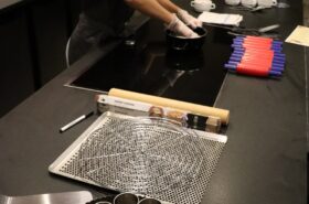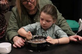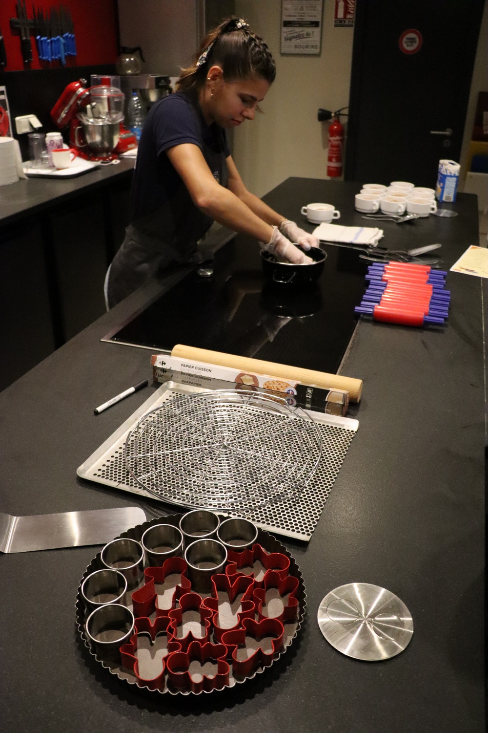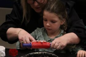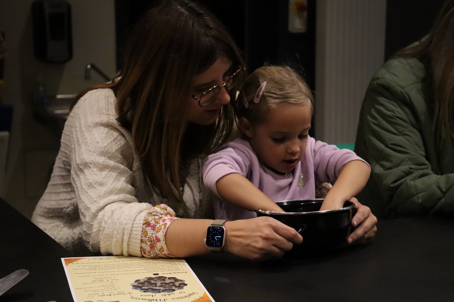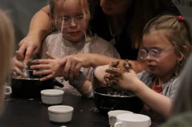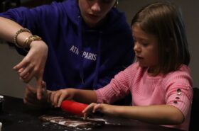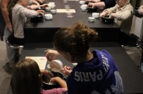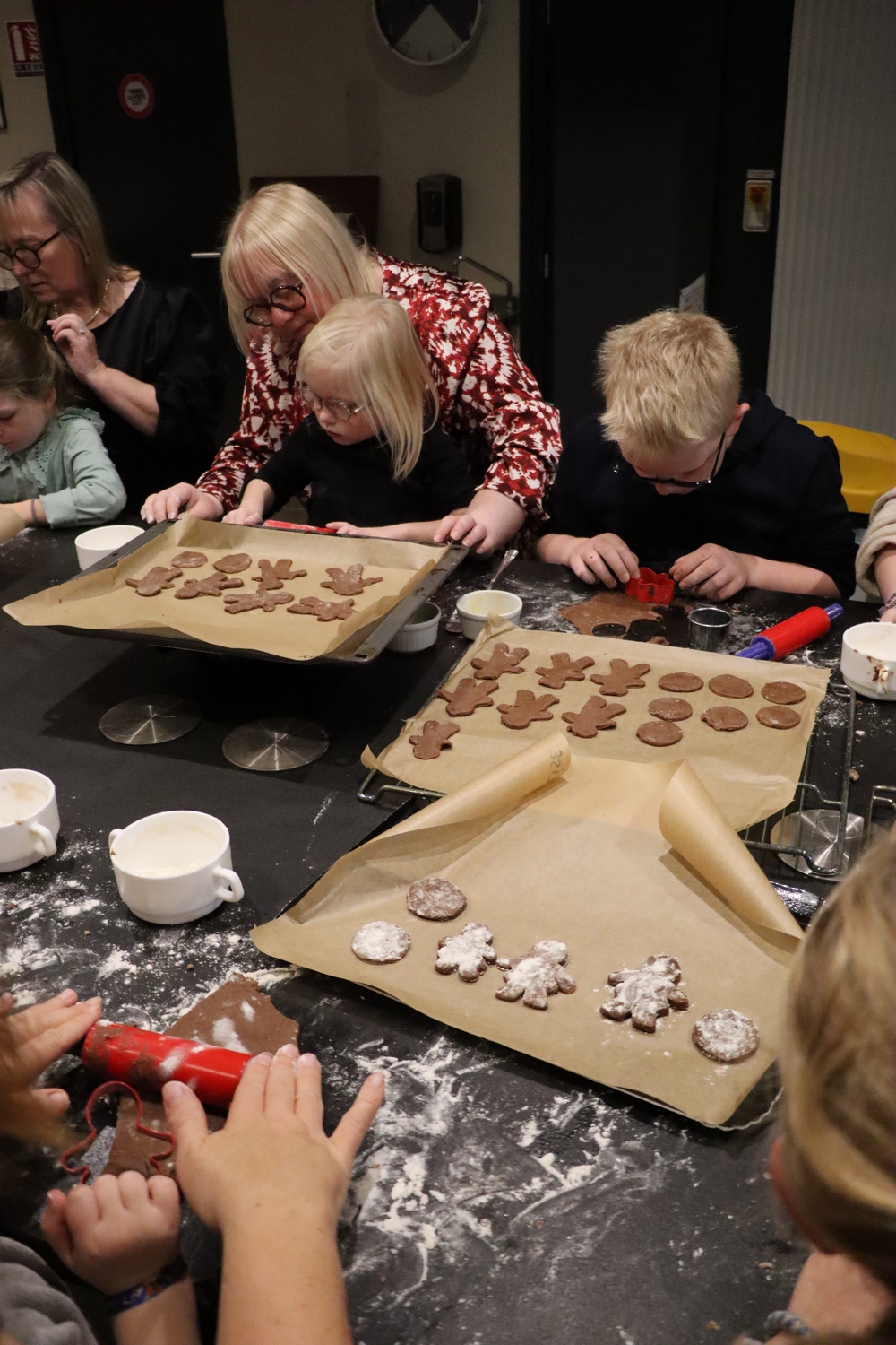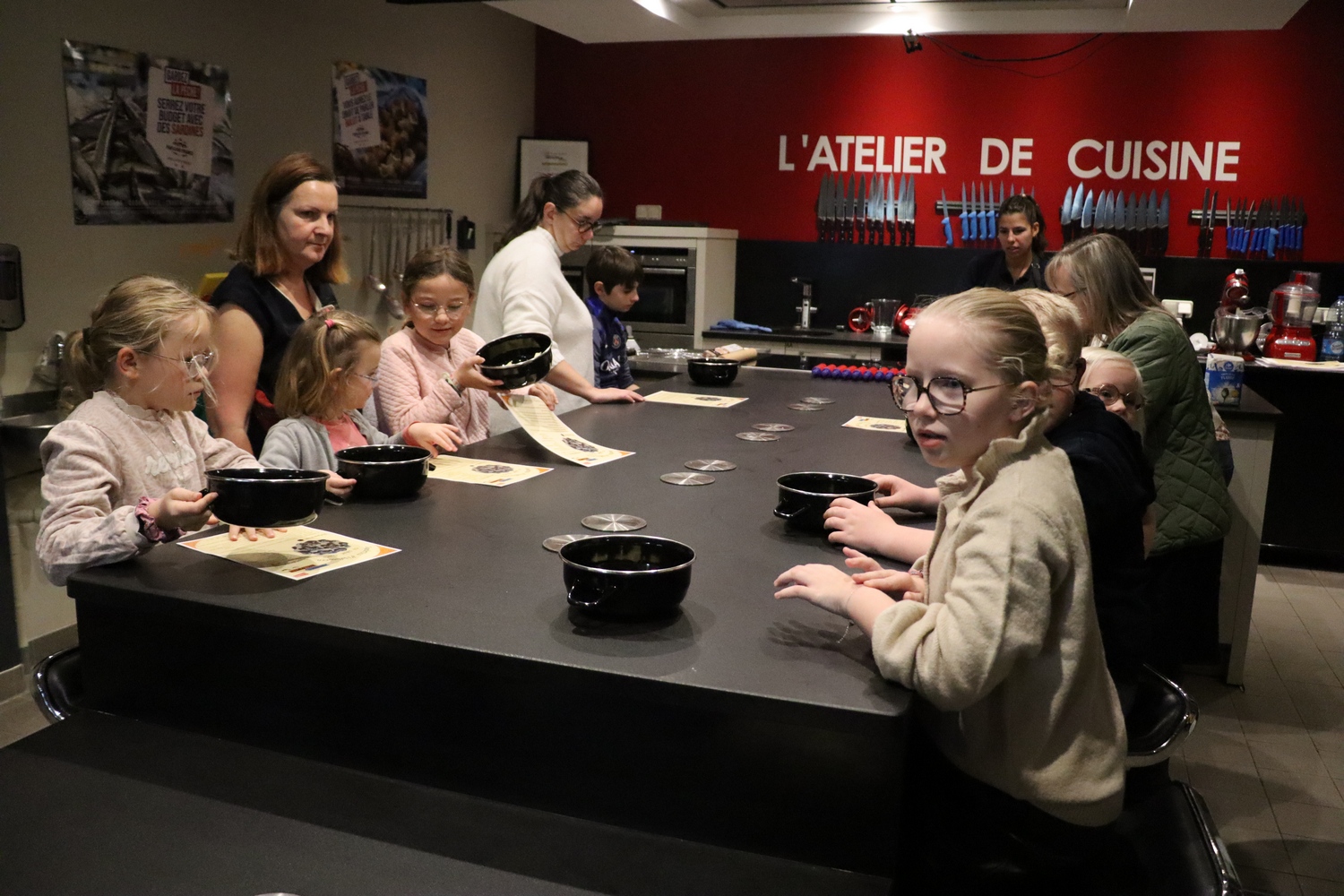 Avant de commencer l’atelier, les petits pâtissiers se sont lavés les mains. Ils ont ensuite pris plaisir à malaxer du beurre, de la poudre de cacao et du sucre cassonade auxquels ils ont ajouté un œuf et de la farine afin d’obtenir une pâte homogène. À l’aide d’emporte-pièces en forme de personnages, les enfants ont découpé les silhouettes qu’ils ont passé au four pendant une dizaine de minutes. Une fois refroidis, ils ont dessiné sur les biscuits des crânes et le squelette avec un glaçage blanc obtenu en mélangeant du sucre glace avec un peu d’eau. Le temps est enfin arrivé de s’installer autour de la table et de déguster ces succulents gâteaux. Une rumeur prétend que quelques-uns sont tombés sur un os !
