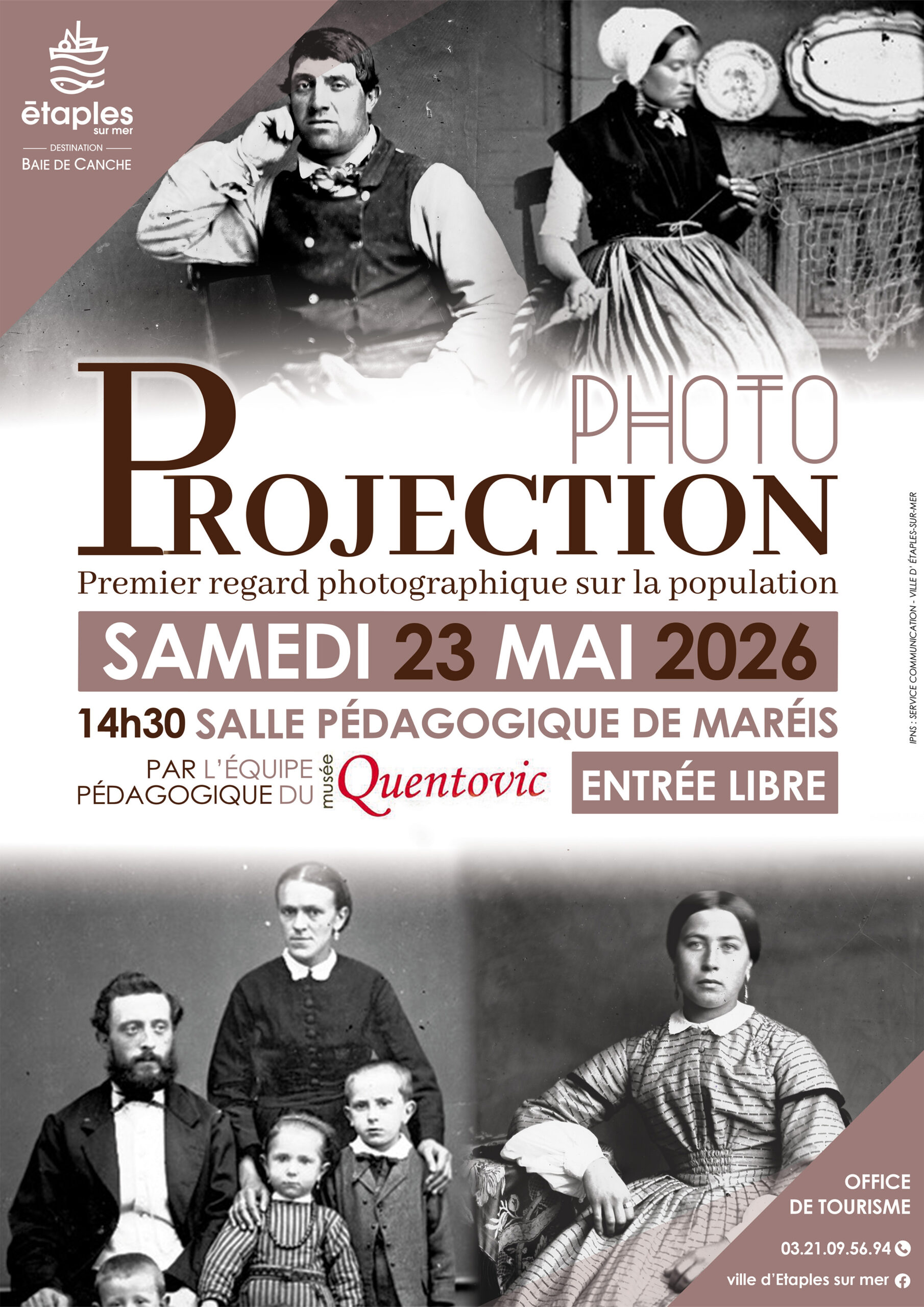 Salle Pédagogique de l’Office Municipal de TourismePar le service culture du musée Quentovic Samedi 23 mai à 14h30 – salle pédagogique de l’Office de Tourisme Plongez dans Etaples-sur-mer au 19ᵉ siècle à travers l’objectif de Gustave Souquet (1805-1867), photographe amateur qui a saisi, avec un long temps de pose, les visages et les métiers de son...
