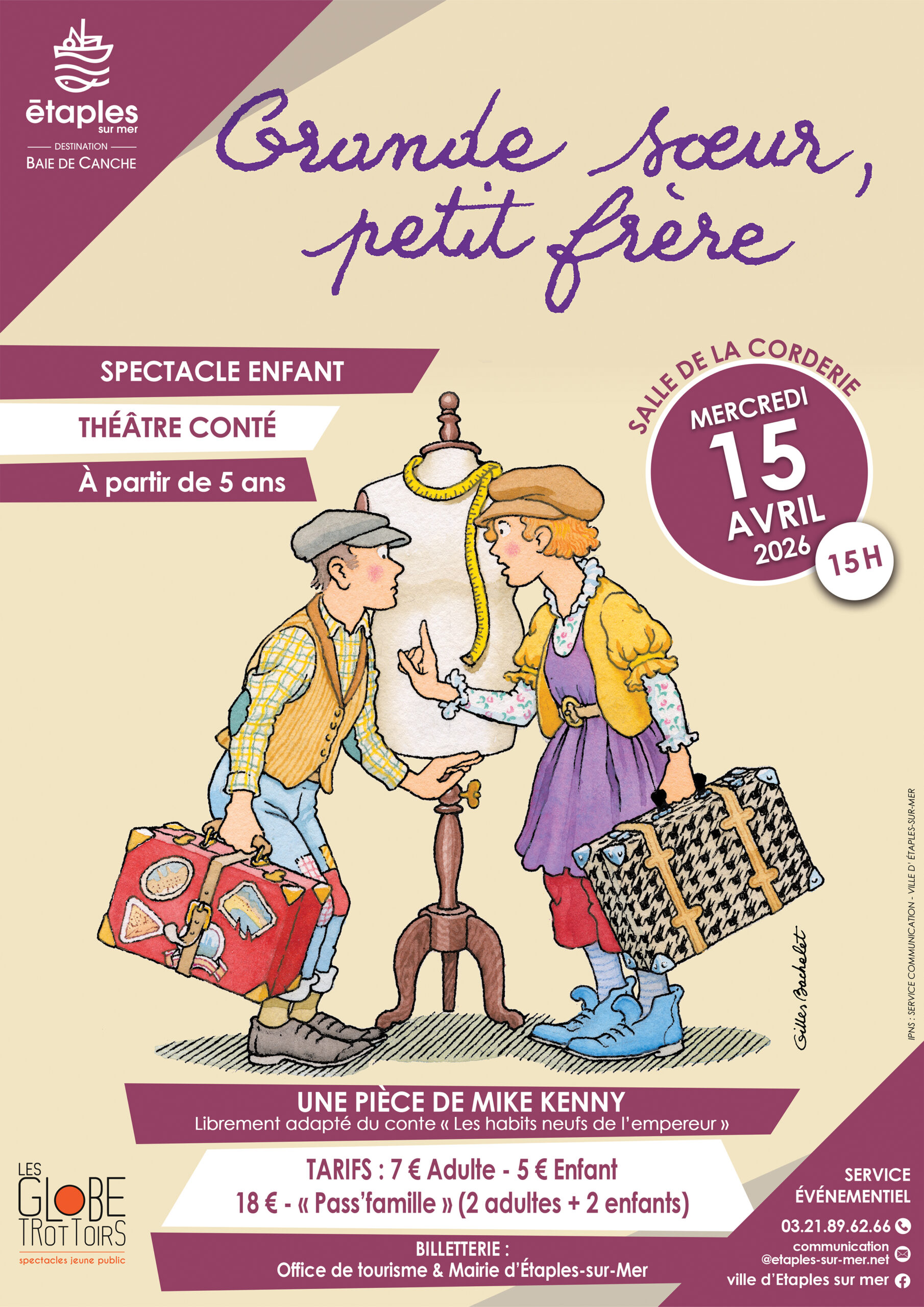 Salle de la CorderiePar le service événementiel Mercredi 15 avril à 15 h – Salle de la Corderie Tarifs : 7€ /adulte - 5 € /enfant - 18 € / Tarif famille (2 adultes et 2 enfants) Infos : 03 21 89 62 73