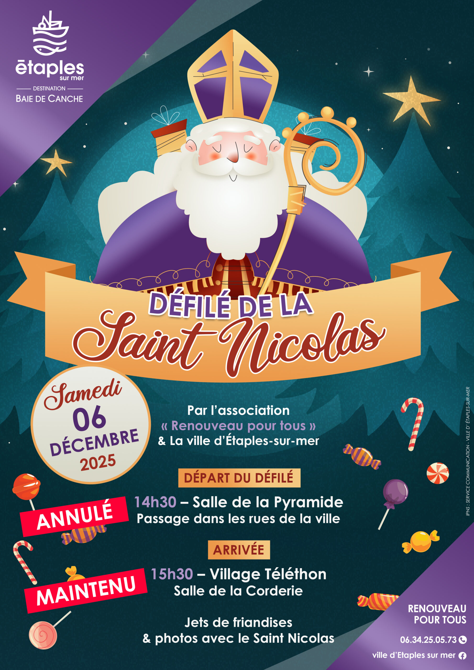 Salle de la CorderiePar l'association "Renouveau pour Tous" Samedi 6 décembre En raison des conditions météorologiques, le défilé de la Saint-Nicolas est annulé. Mais pas de panique, Saint Nicolas a tout prévu ! Il sera présent ce samedi 6 décembre, à partir de 15h30, à la salle de la Corderie, pour rencontrer les...