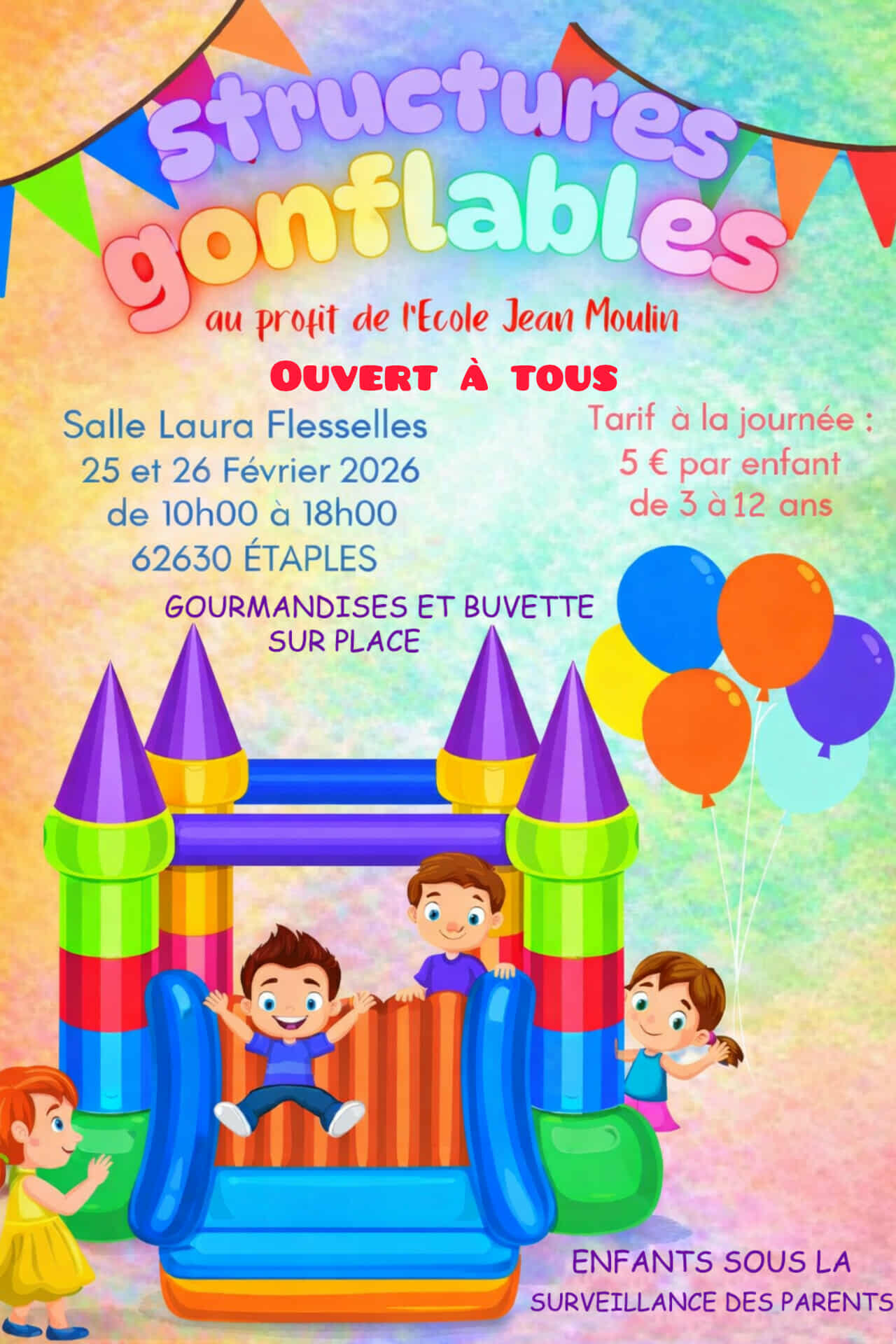 Salle Laura Flessel boulevard Lefèvre, Etaples, FrancePar l’école Jean Moulin Mercredi 25 et jeudi 26 février de 9h à 17h – salle Laura Flessel Tarif : 5 € la journée de 3 à 12 ans Infos : 03 21 94 72 37
