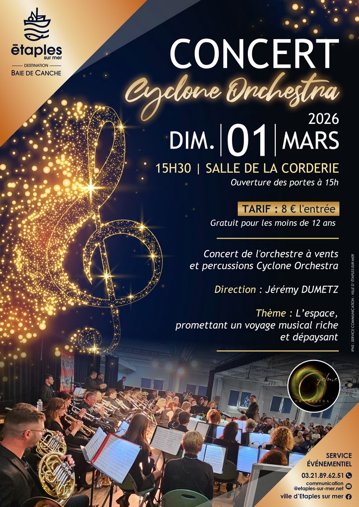 Salle de la CorderieConcert Symphonique Par « Cyclone orchestra » Dimanche 1er mars à 15h30 – Salle de la Corderie Pour la deuxième fois, le Cyclone Orchestra fera vibrer la salle de la Corderie. Fruit de rencontres humaines et musicales tissées au fil des vingt dernières années, cet orchestre à vents et percussions réunit 45...