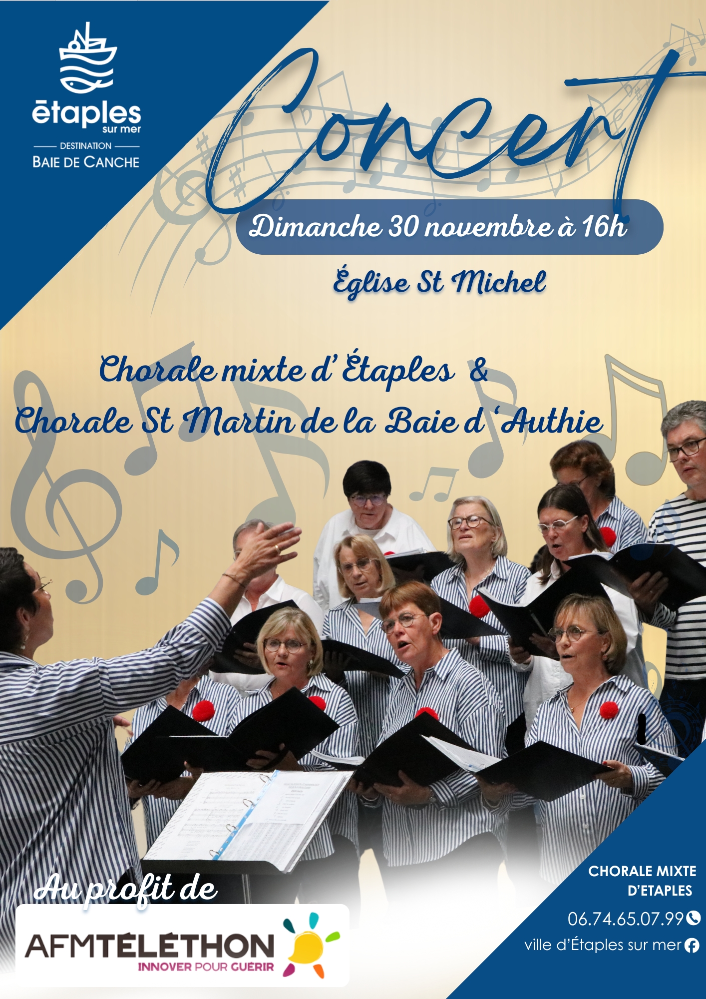 Par l’association « la Chorale Mixte d’Etaples » Dimanche 30 novembre à 16h – église Saint Michel Concert de la chorale ; chants profanes et chants religieux. Infos : M.E. Ramet – 06 74 65 07 99