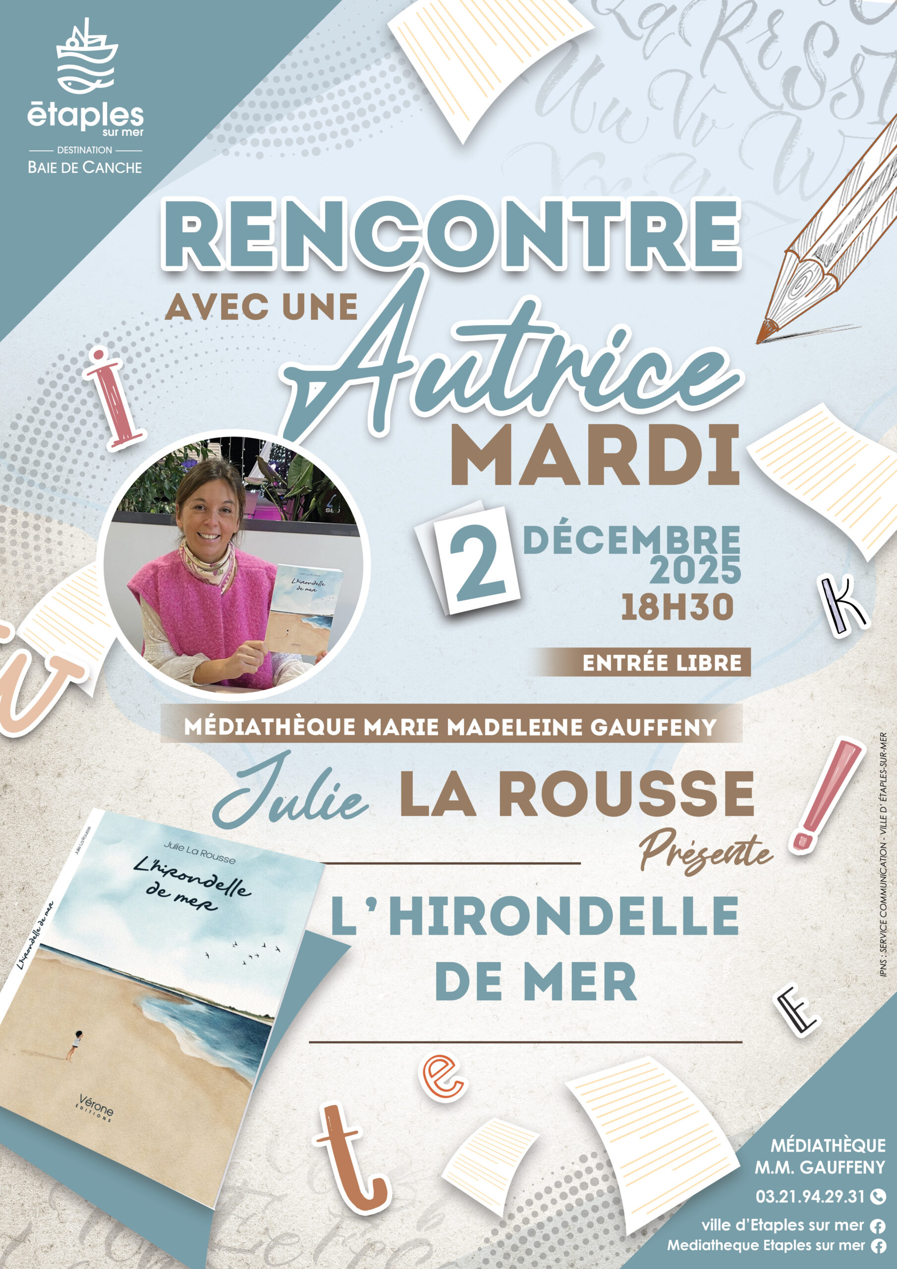 La médiathèque Marie-Madeleine Gauffeny vous invite à un moment d’échange et de découverte avec Julie La Rousse le mardi 2 décembre à 18h30. Infirmière et autrice naissante, elle viendra présenter son premier roman «L’hirondelle de mer », publié aux éditions Vérone. Sorti le 15 janvier 2025, ce livre s’inspire de... |