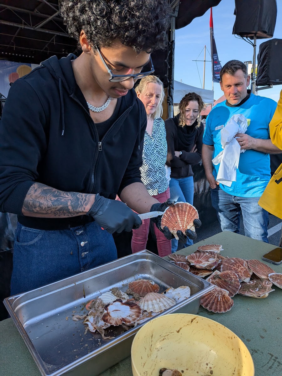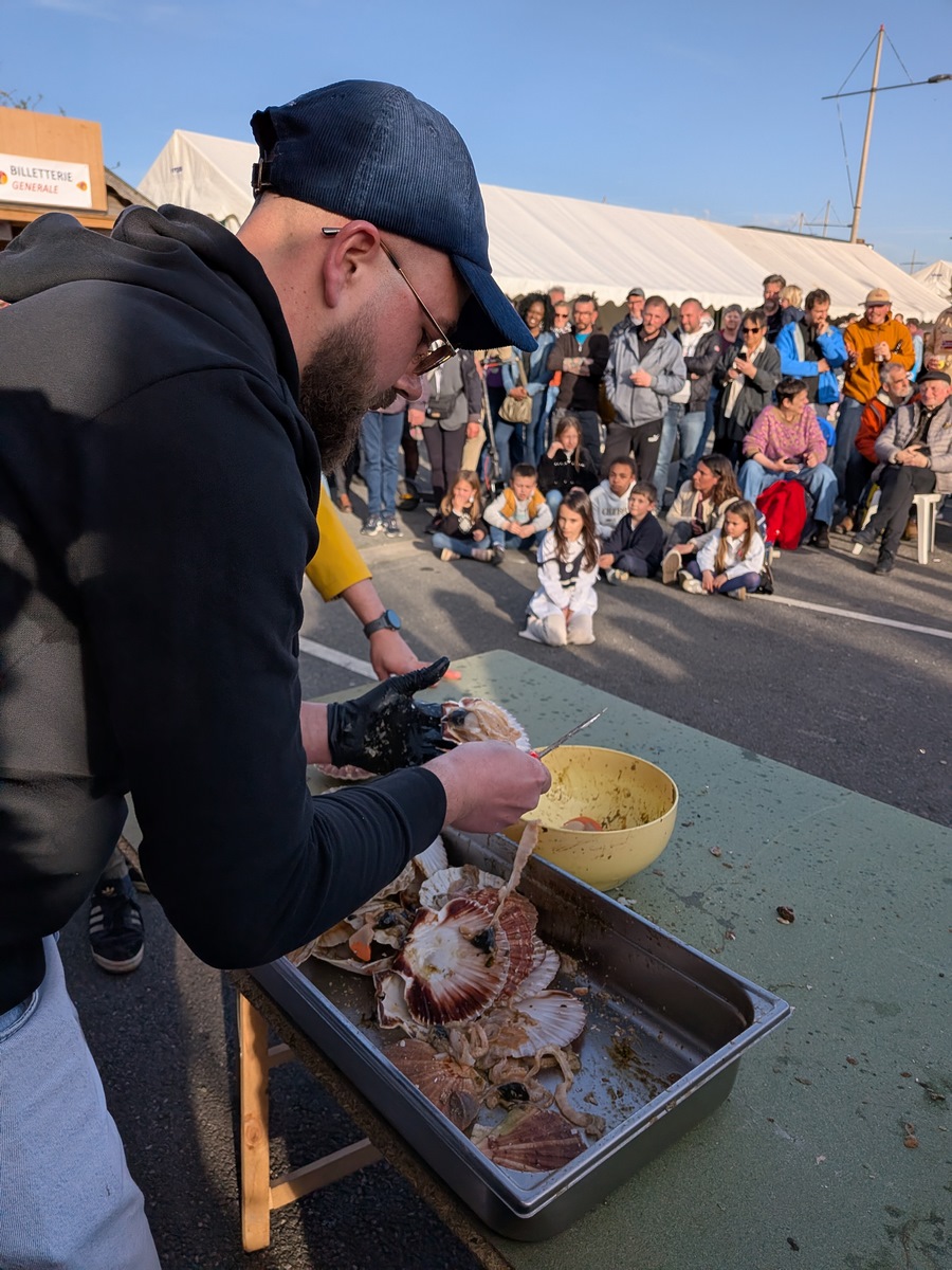 Un peu plus loin, le comptoir des chefs a attiré curieux et amateurs de cuisine. Aux côtés de la chroniqueuse culinaire Pépée le Mat, de grands chefs régionaux comme William Élliot ou Olivier Dubois ont partagé leurs recettes et leurs conseils pour sublimer la star du jour : la coquille Saint-Jacques. Les ateliers ont ainsi permis de découvrir différentes façons de la valoriser en mêlant démonstrations, dégustations et échanges autour de ce produit phare.