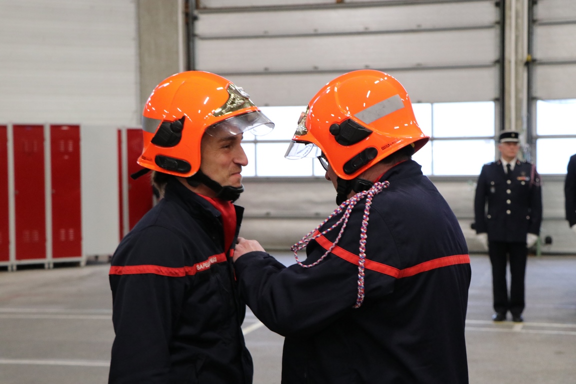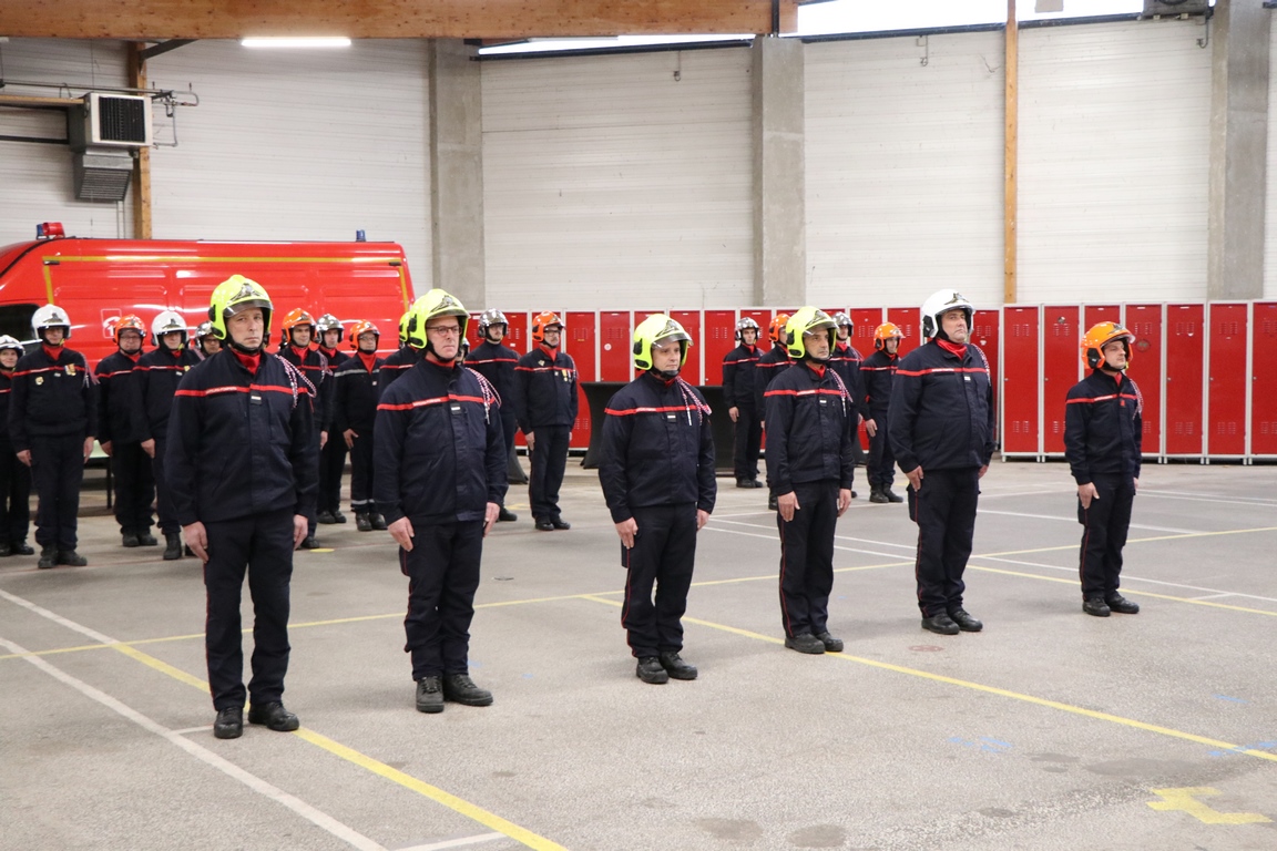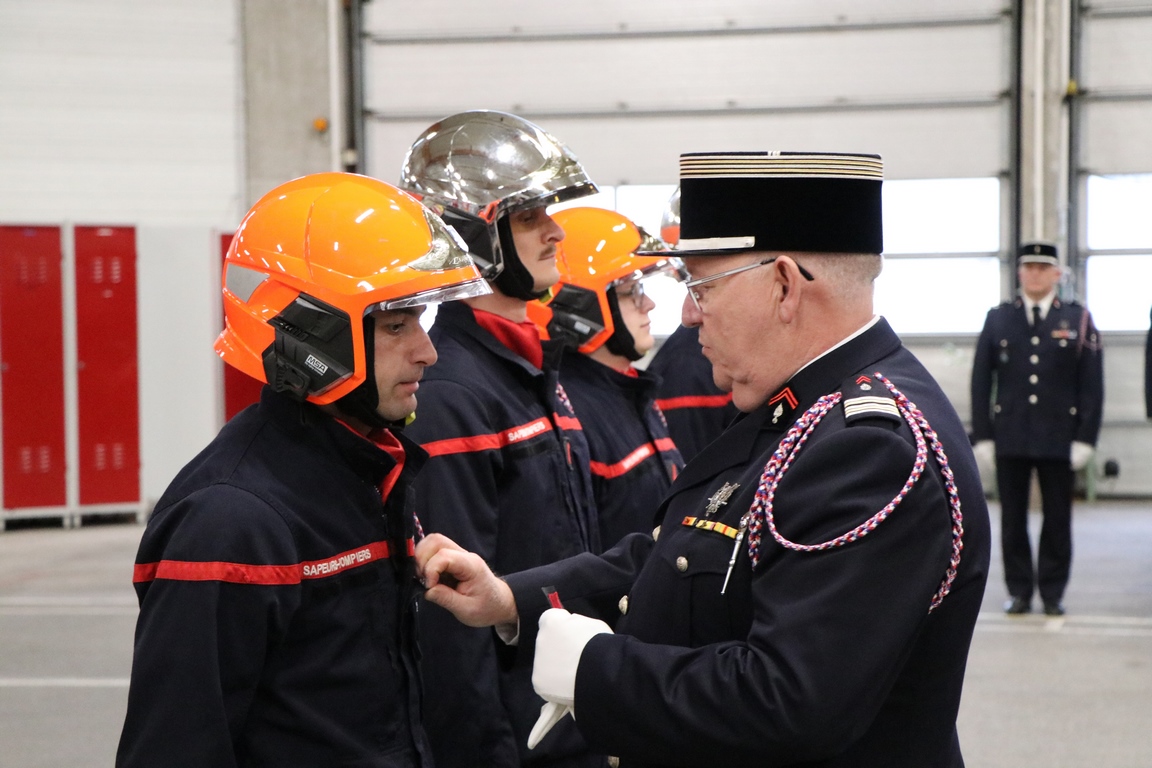 Les élus et les troupes se sont ensuite rassemblées pour la remise des distinctions et des avancements. Volontaires et professionnels ont défilé tour à tour pour recevoir leurs distinctions, signe de reconnaissance pour leur engagement et leur disponibilité au quotidien.