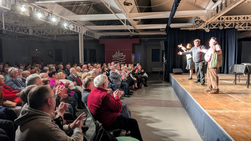 Pour ouvrir les festivités du Hareng Roi, l’association « Les Bons Z’Enfants d’Étaples » proposait, ce samedi 8 novembre, son traditionnel spectacle patoisant à la salle de la Corderie. « On marche s/l’tête », le nouveau spectacle de la compagnie « Sylvie & Co(q)s » a réuni près de 300 spectateurs. Ils sont venus profiter d’une soirée placée sous le signe du rire et du bon sens… enfin, presque !