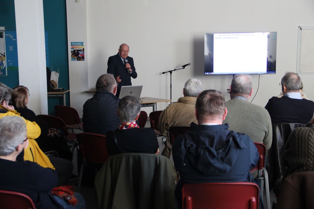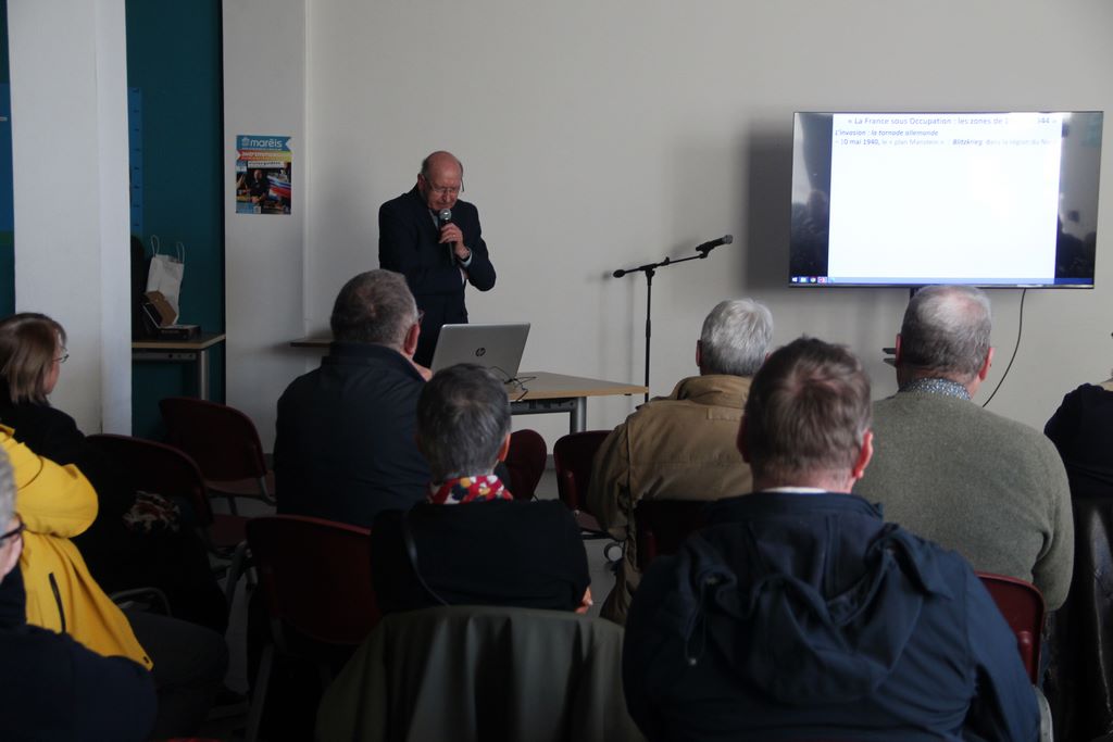 Il a tout d’abord retracé le début du conflit qui a commencé le 3 septembre 1939 par la déclaration de guerre de la France et de l’Angleterre à l’Allemagne. Le 10 mai 1940, l’armée allemande mène à bien l’invasion foudroyante des Pays-Bas, du Luxembourg, de la Belgique et de la France.