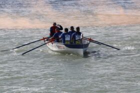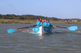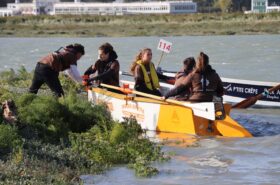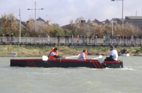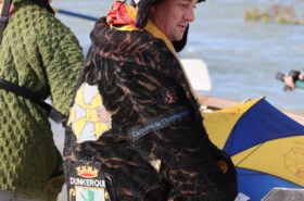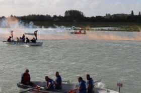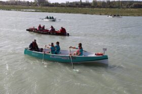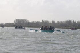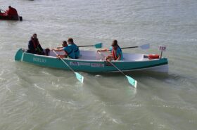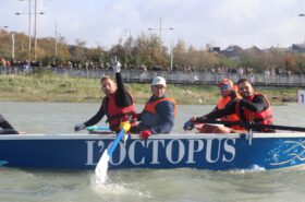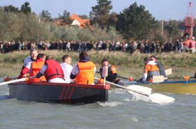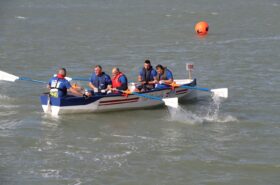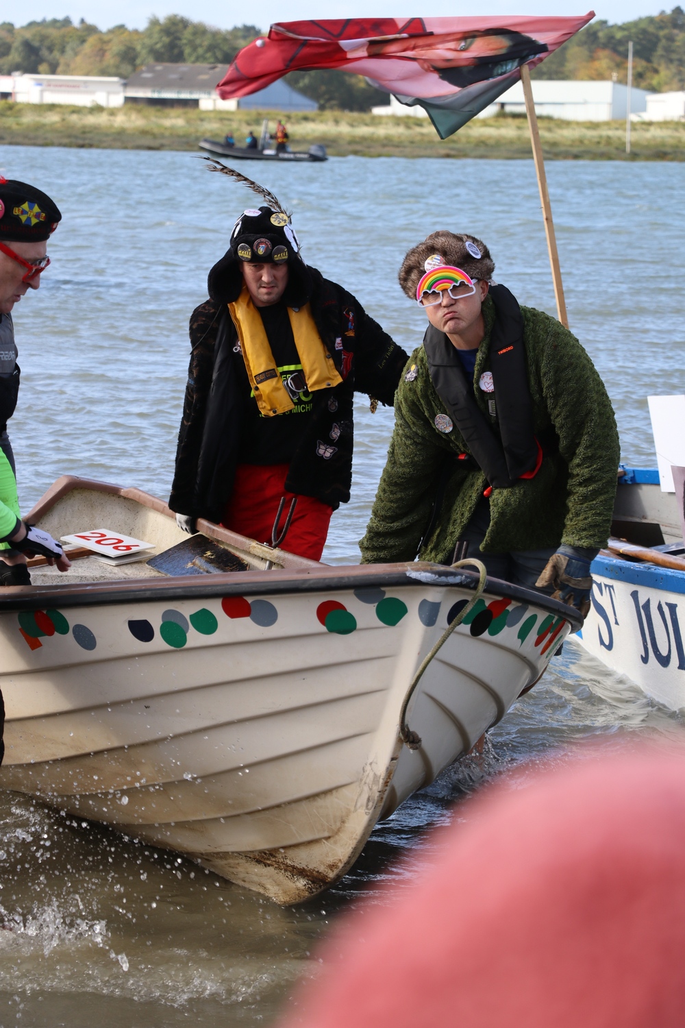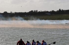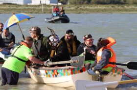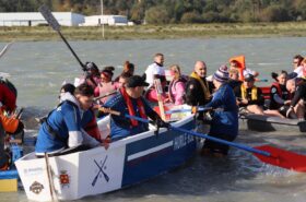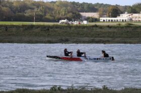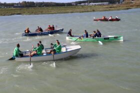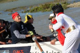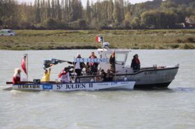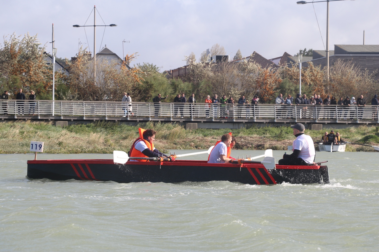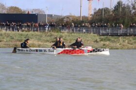 La joute a été suivie par l’affrontement des plus costauds avec la course à la godille. Cette technique singulière de navigation consiste à manœuvrer l’embarcation avec un seul aviron fixé à l’arrière du bateau. 3 participants étaient alignés au départ et c’est Pierre-Antoine Descharles qui est sorti en tête suivi de Julien Lignier et Luc Ramet.