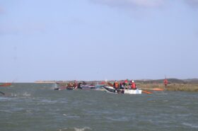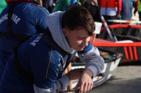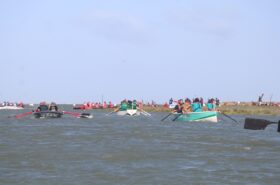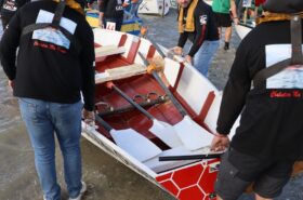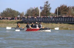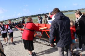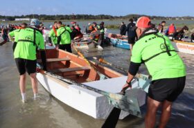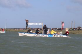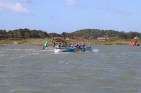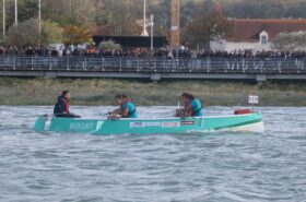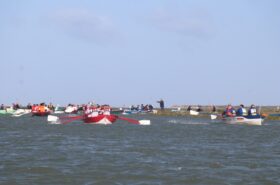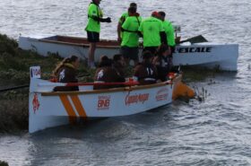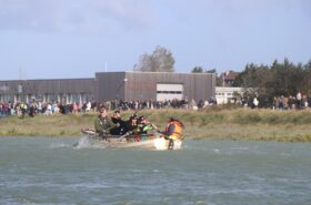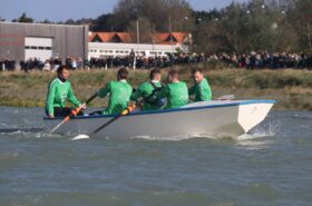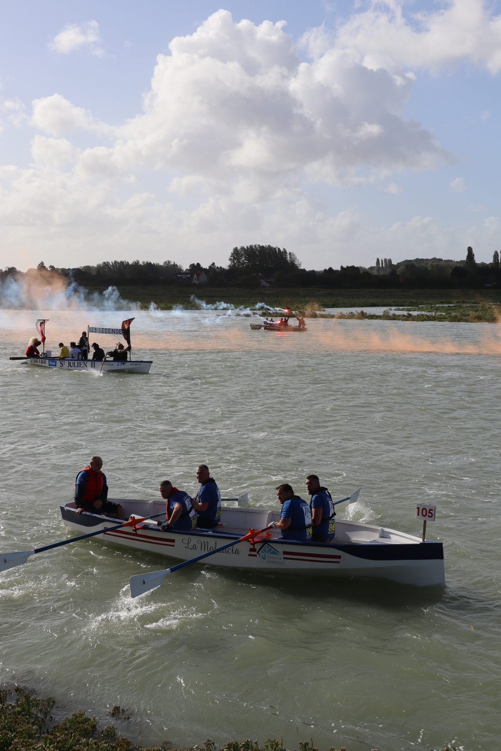 Après le défilé rythmé par la banda d’boulonnée et le traditionnel dépôt de gerbes au pied du calvaire des marins, les équipages se sont réunis au centre nautique afin d’attendre le feu vert pour la mise à l’eau. Au top des organisateurs, les 30 canotes ont rejoint la ligne de départ malgré les péripéties causées par le courant. Vers 11h15, les embarcations se sont élancées pour couvrir les 3 kilomètres qui les séparaient de la victoire. En dépit d’un vent contraire en début de course, la canote « La mère du Christ » a rapidement creusé l’écart et n’a jamais été rattrapée. Au passage de la bouée, chaque équipage, encouragé par leur barreur, a puisé dans ses réserves pour franchir la ligne d’arrivée et terminer cet exercice particulièrement exigeant.