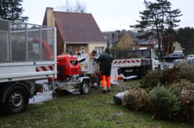 Les mardi 20 et mercredi 21 janvier 2026, les agents ont procédé au broyage de ces résineux. Grâce à un équipement performant, cette étape a été réalisée en un temps record.  Fidèle à ses engagements écologiques, la municipalité a valorisé ce broyat en l’utilisant comme paillage naturel le long du chemin reliant le poney-club de Rombly à la piscine.