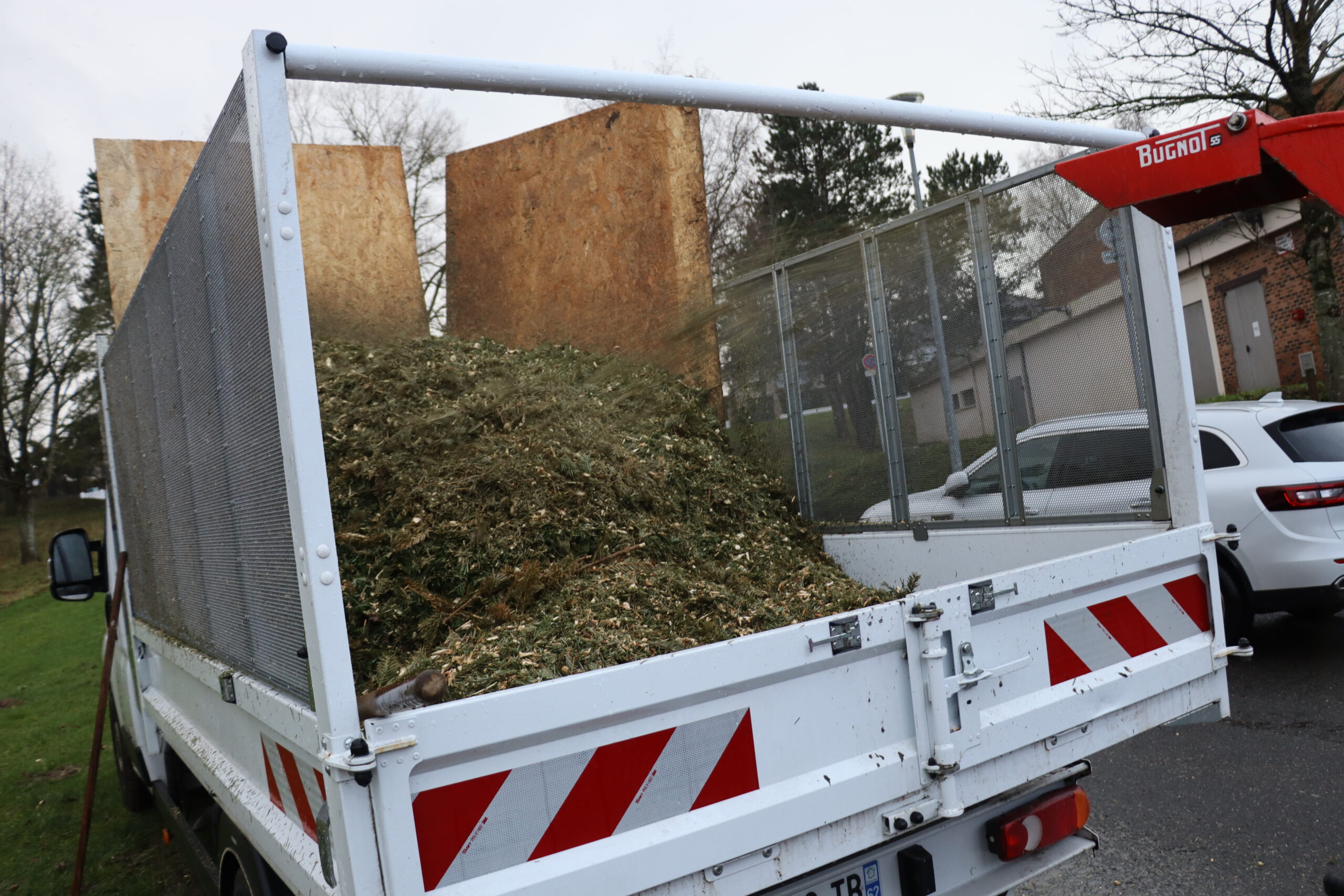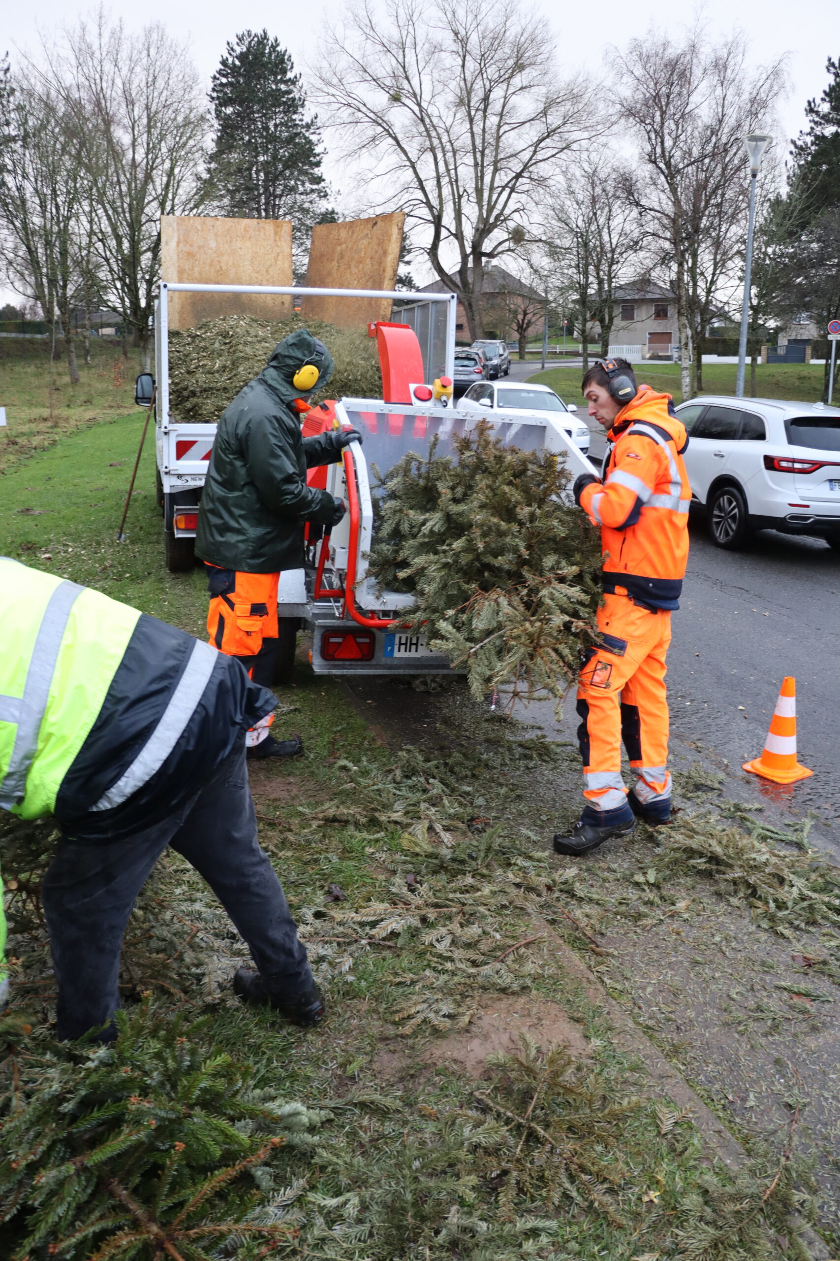 Les mardi 20 et mercredi 21 janvier 2026, les agents ont procédé au broyage de ces résineux. Grâce à un équipement performant, cette étape a été réalisée en un temps record.  Fidèle à ses engagements écologiques, la municipalité a valorisé ce broyat en l’utilisant comme paillage naturel le long du chemin reliant le poney-club de Rombly à la piscine.