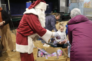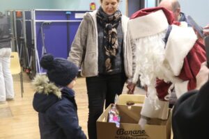 La représentation s’est clôturée par une distribution de sachets de friandises offertes par le Père Noël en personne. Les enfants étaient enchantés, heureux de le rencontrer et ravis de repartir avec leur petit cadeau.
