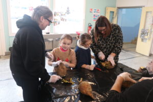 Ce jeudi 11 décembre après-midi, les élèves de CP de l’école Jean-Moulin ont eu le plaisir de participer au concours de guénels. Accompagnés d’un adulte, ils ont chacun reçu une betterave et ont pu commencer à la creuser.