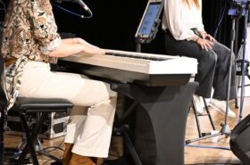 Pour accompagner cette dégustation, un duo piano-voix a illuminé la scène. Grâce à une sonorité vocale exceptionnelle, les artistes ont su captiver l’auditoire et créer une atmosphère feutrée et chaleureuse.