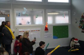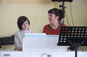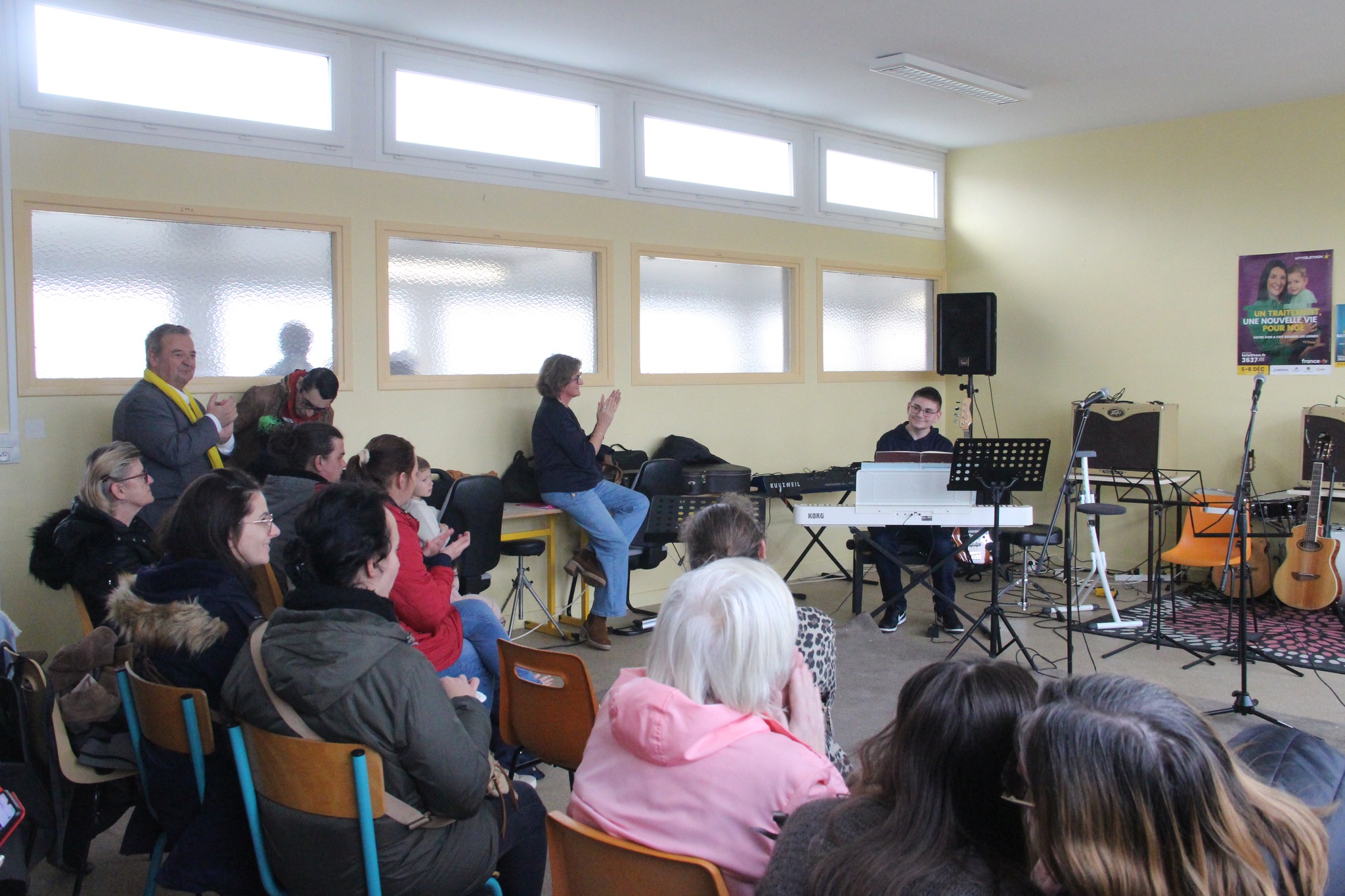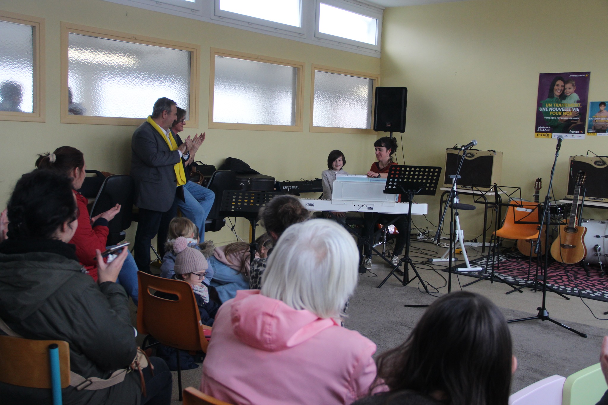 L’École de Musique a ouvert ses portes pour une journée placée sous le signe du partage et de la solidarité ce mercredi 3 décembre. Devant de nombreux parents venus les applaudir, les élèves ont présenté avec fierté les morceaux de piano, guitare et chant travaillés depuis septembre, sans oublier les prestations de la chorale et de l’éveil musical sous les yeux de Monsieur le Maire, Aurore Wacogne, coordinatrice locale du Téléthon et Sébastien Baillet, Adjoint à la culture.