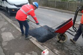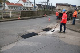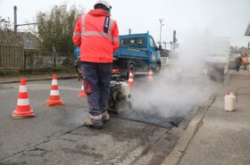 Après des découpes préparatoires effectuées en début de semaine, les équipes d’Eurovia sont intervenues ce vendredi pour reboucher plusieurs nids-de-poule. Les réparations ont été réalisées avec de l’enrobé à chaud (environ 160°C), une méthode plus résistante qu’un simple rebouchage à froid.