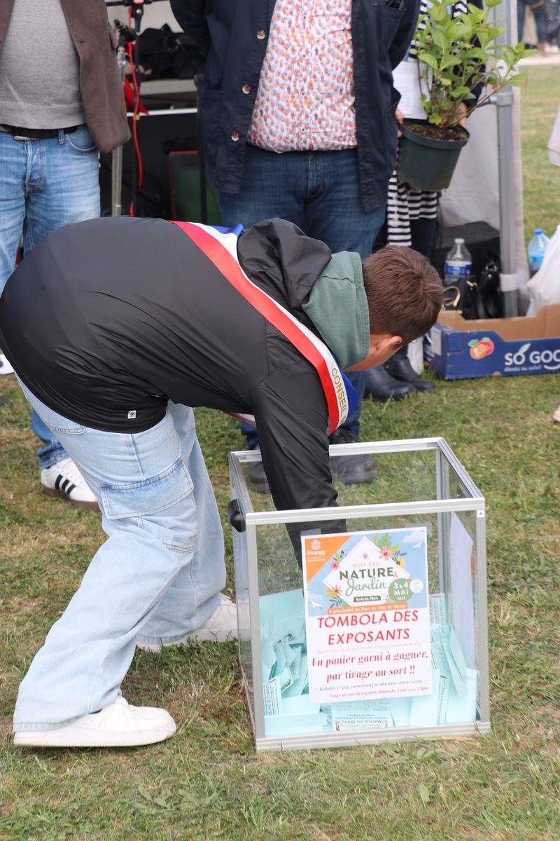 À la suite de la remise des prix, le conseil municipal des jeunes a effectué le tirage au sort de la tombola des exposants. Cathy LANDCHOOT et Rémi MALFOY ont remporté un joli panier garni.