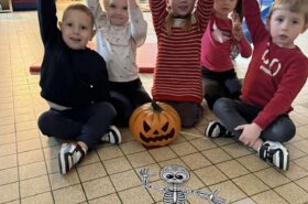 ). Nos petits artistes ont aussi préparé la décoration en créant fantômes et masques mexicains. Les sorties à la Corderie et à Dennlys Parc ont complété ce programme mémorable.
