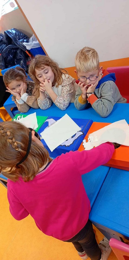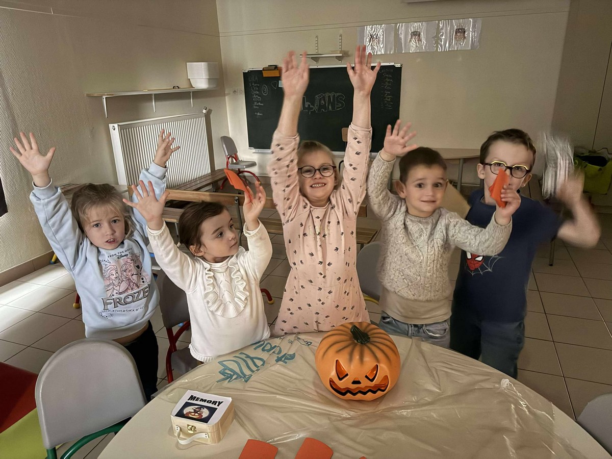 ). Nos petits artistes ont aussi préparé la décoration en créant fantômes et masques mexicains. Les sorties à la Corderie et à Dennlys Parc ont complété ce programme mémorable.