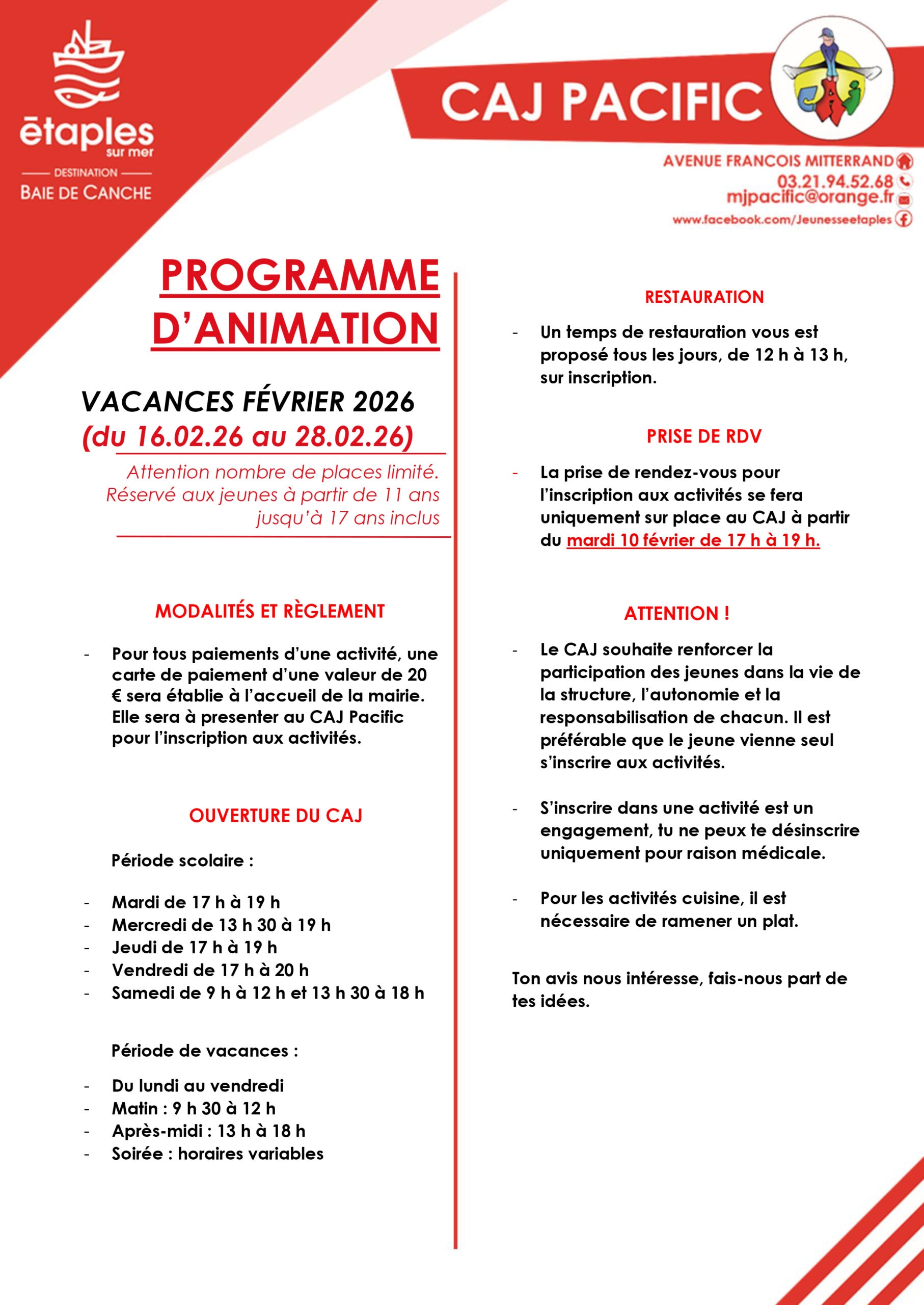 PROGRAMME D’ANIMATION du CAJ PACIFIC