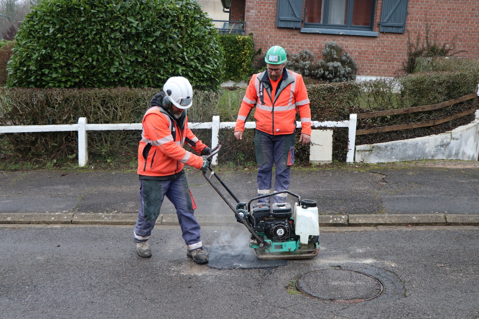 Depuis ce lundi 26 janvier 2026, des travaux de réfection de la voirie sont en cours sur l’ensemble de la commune afin d’améliorer l’état des chaussées et de garantir des conditions de circulation plus sûres, suite aux conditions météorologiques de cet hiver, gel et neige.