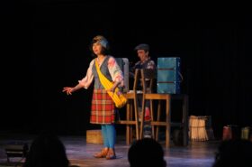 Sur scène, Rita et Archie, une sœur et un frère aussi complices qu’insupportables, ont entraîné les enfants dans une fuite rocambolesque. Leur crime ? Avoir dupé un empereur vaniteux en lui vendant… des vêtements invisibles !