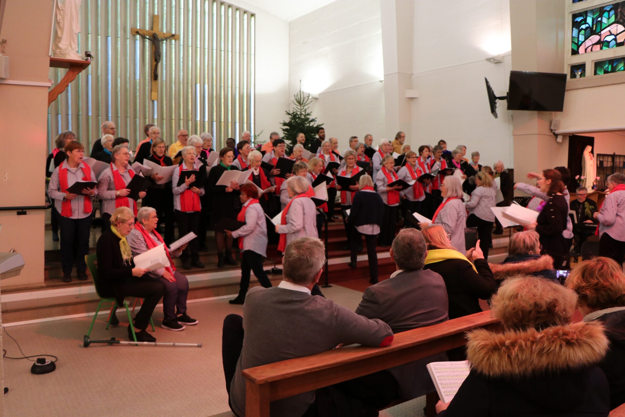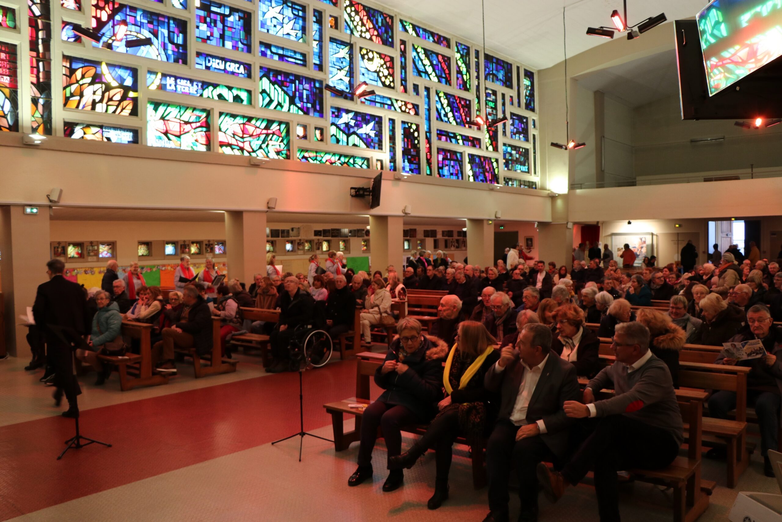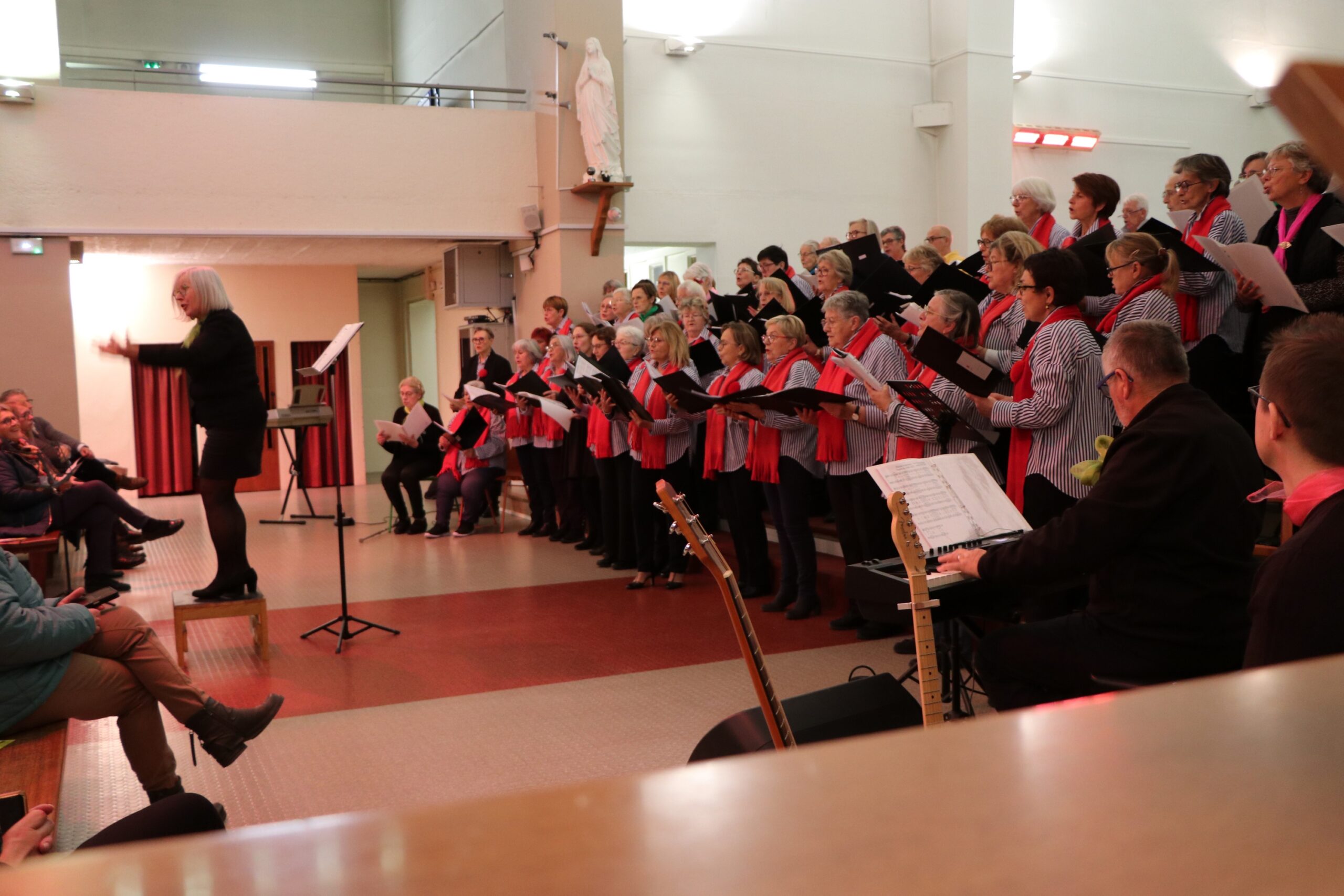 La représentation s’est ouverte par un chant commun, « Pèlerins d’espérance » suivi de « Astre béni du marin », interprétés à l’unisson par les deux ensembles vocaux.