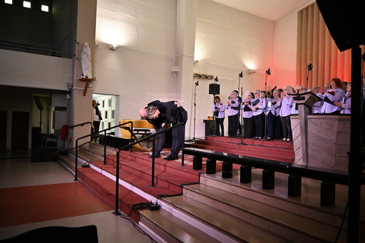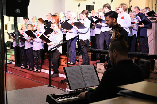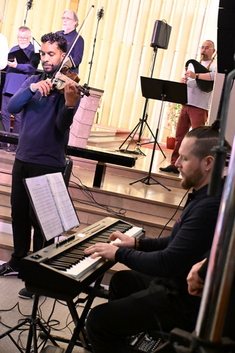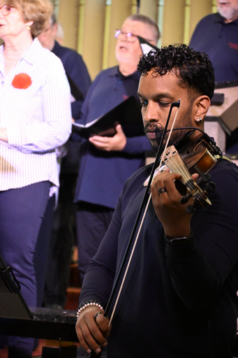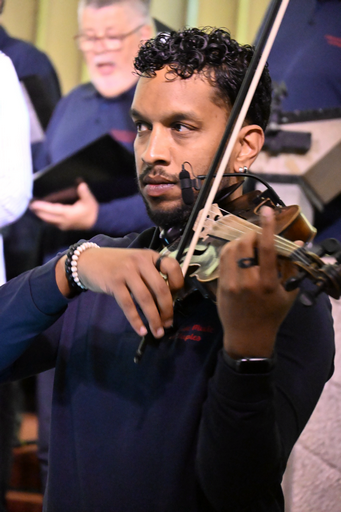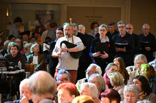 Le caractère exceptionnel de cette édition résidait également dans l’accompagnement musical. Pour la première fois, la chorale était soutenue par des musiciens de talent : Pierre Arthemise au violon, Simon et Régis Hagnéré au piano, ainsi que Fabrice Haudiquet à la veuze. Les sonorités singulières de cette cornemuse, alliées à la finesse du violon, ont apporté une dimension émotionnelle rare, soulignant parfaitement le répertoire maritime et liturgique de l’ensemble.