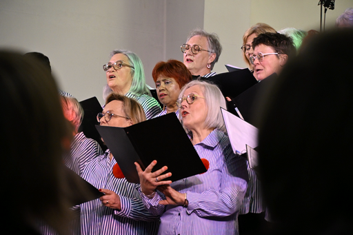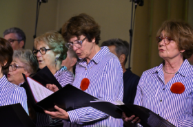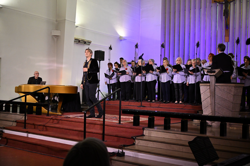 L’événement, coordonné avec brio par la Chorale Mixte d’Étaples aux côtés des services municipaux et de David Bonfy, a tenu toutes ses promesses. Dès l’ouverture, la quarantaine de choristes étaplois a pris possession des lieux pour une première partie empreinte de solennité et de tradition. Sous la direction de leurs cheffes de chœur, ils ont interprété des titres forts tels que « Astre béni du marin » ou « La Quête ».