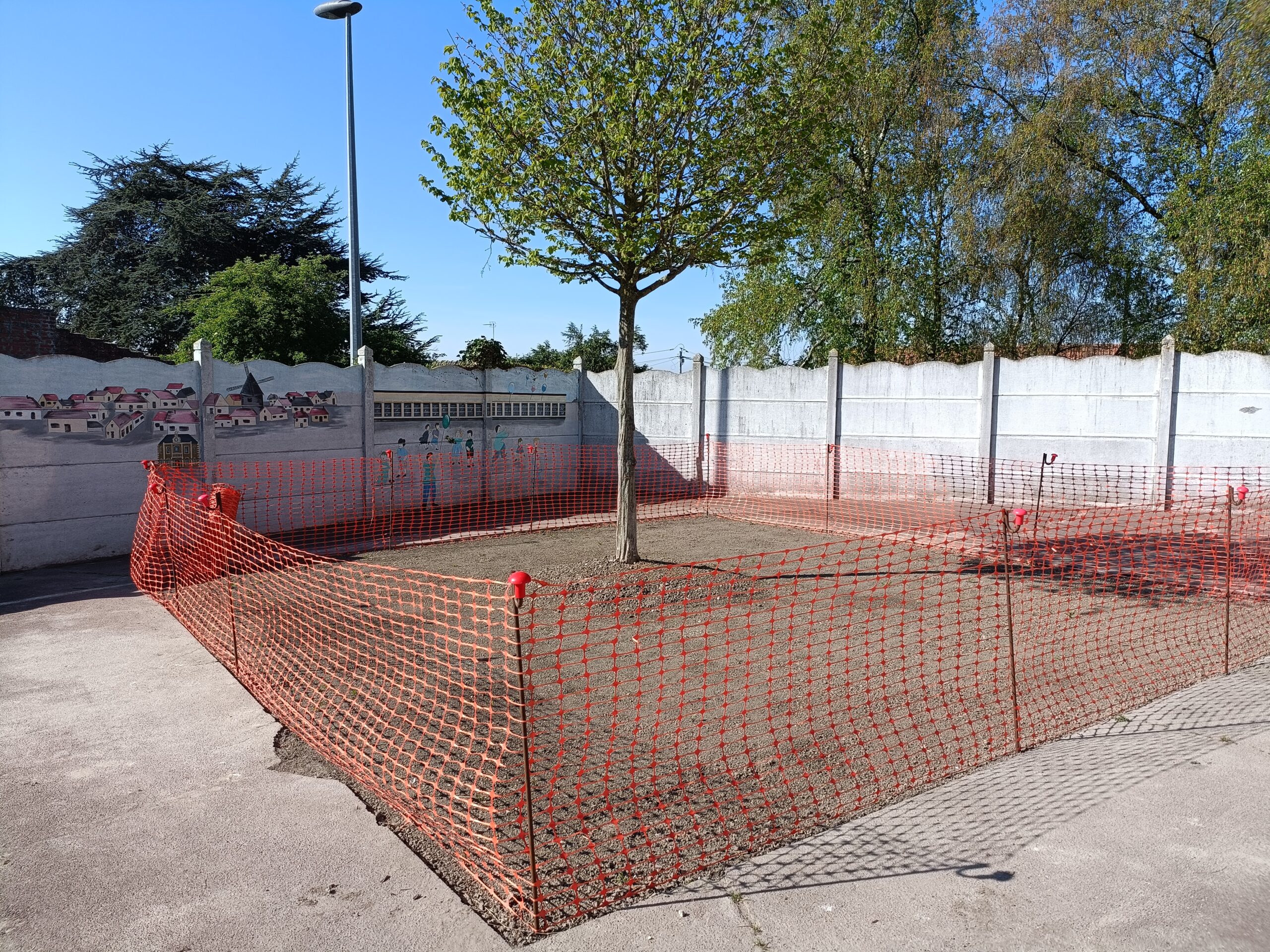 En parallèle, l’aménagement d’un nouvel espace ombragé dans la cour de récréation a été mis en œuvre. Ce projet a pour but de rendre la cour plus agréable et plus naturelle pour les élèves, en remplaçant une partie du revêtement actuel par des surfaces plus végétalisées.